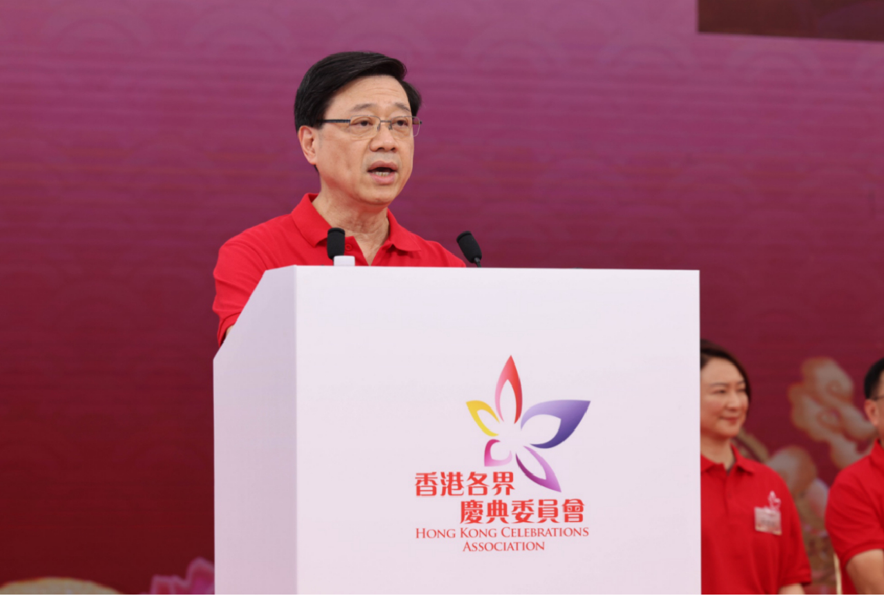 行政長官李家超致辭時表示,今年是香港回歸祖國27周年,是中華人民共和國成立75周年,意義重大。國家發展一日千里,今年首季和去年全年經濟實質增長,都超過5%,是全球主要經濟體中增長最快之一。作為中華兒女的我們,都對國家的高質量發展感到無比自豪。