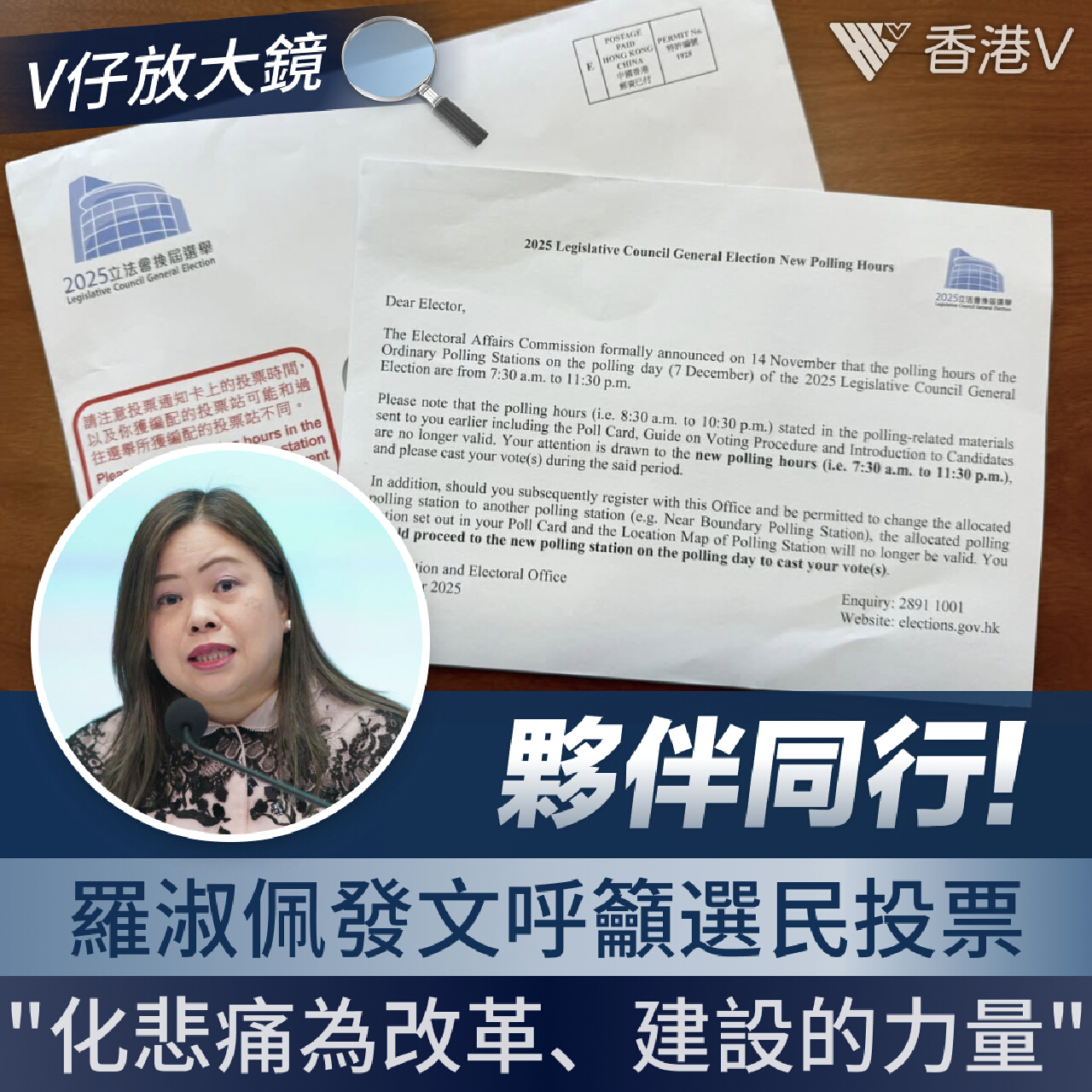 文末,羅淑佩呼籲選民積極參與投票,懇請全港選民本着一顆愛港建港的心,在12月7日投下極有意義的選票。“為香港選出有抱負、有能力的立法會議員與我們一同踏上重建之路,化悲痛為改革、建設的力量。”