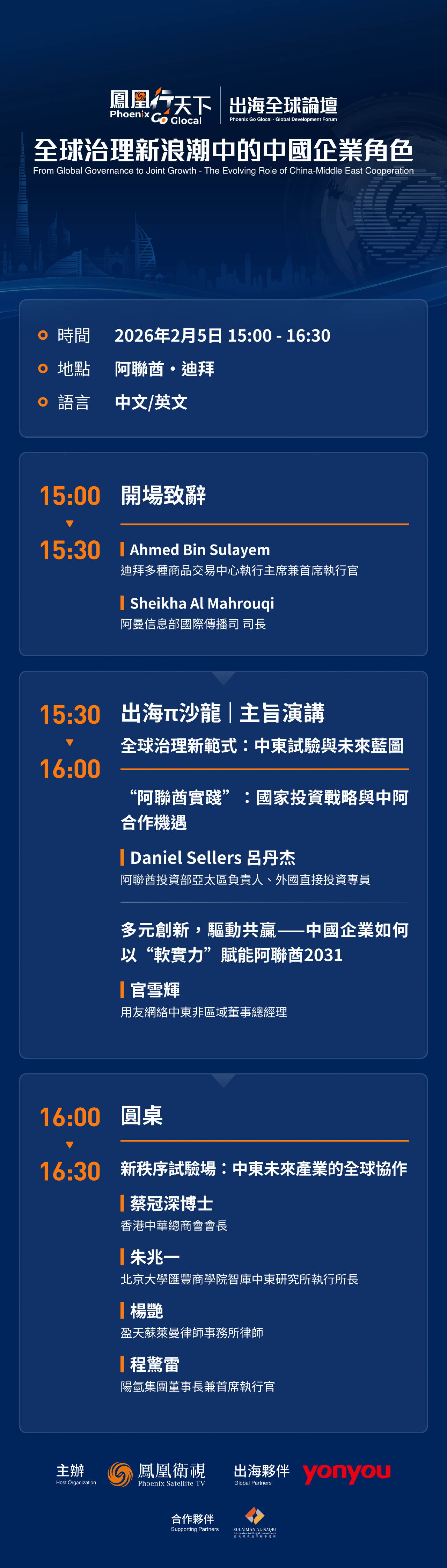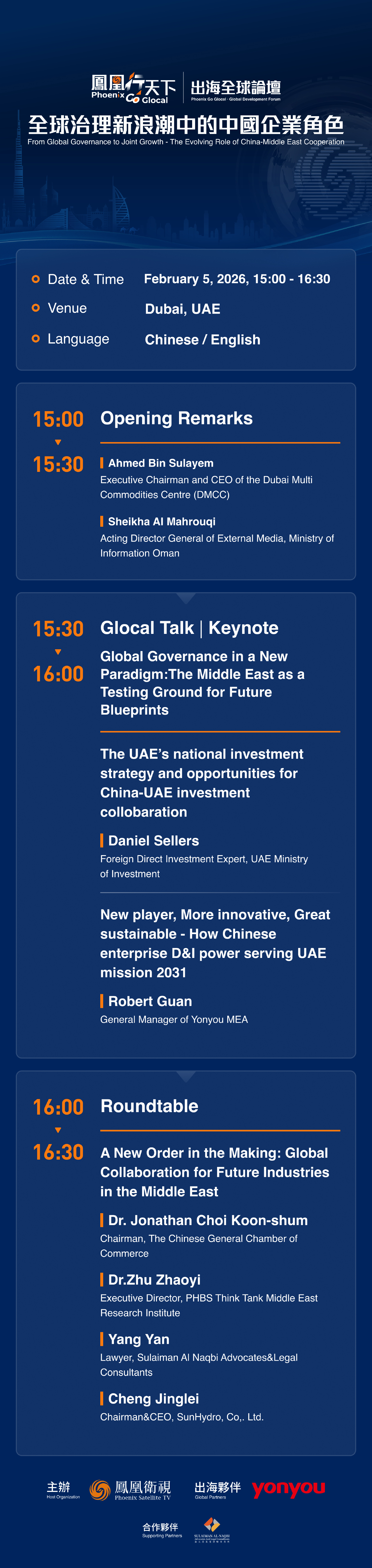 2月5日,我們將與來自阿聯酋及海灣地區的政府決策者、來自本地和中國的商業領袖以及深耕區域的學界專家,聚焦中東市場和中企出海議題,共同討論“全球治理新浪潮中的中國企業角色”。