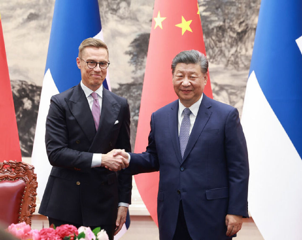 习近平指出,芬兰是最早一批同新中国建交的西方国家之一,也是第一个同中国签订政府间贸易协定的西方国家。建交以来,中芬始终友好相处、互尊互信,树立了国与国之间超越历史、文化、制度差异,平等交往的典范。当前,世界百年变局加速演进,人类社会面临的风险挑战增多。在此背景下,中芬面向未来的新型合作伙伴关系更显独特价值,值得倍加珍惜和发扬光大。中方愿同芬方一道,加强战略合作,弘扬友好传统,将中芬面向未来的新型合作伙伴关系进一步推向前进,更好造福两国和两国人民,为世界和平和发展作出新贡献。