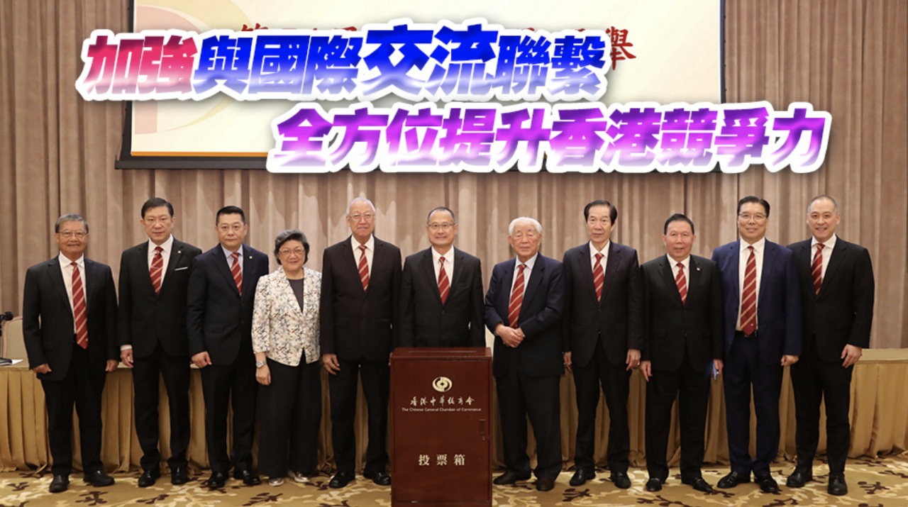 香港中華總商會(中總)今日(28日)順利選出新一屆會長,蔡冠深獲選連任為第54屆會長。中總同時選出8位副會長,包括連任的曾智明、楊華勇、張學修、李引泉及姚祖輝,以及新當選的李惟宏、樊敏華及楊燕芝。該會現任副會長胡曉明及謝湧海將榮任永遠榮譽會長。