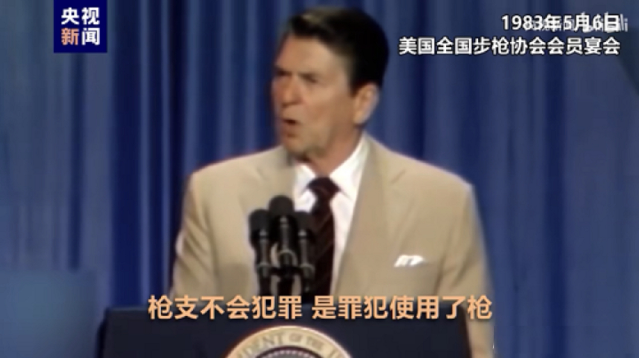 里根中枪是1981年3月,可是1983年,里根以现任总统身份在全国步枪协会年会发表讲话,照样“枪”心不改,说:“永远不会解除任何想要保护家庭的美国人的武装”。