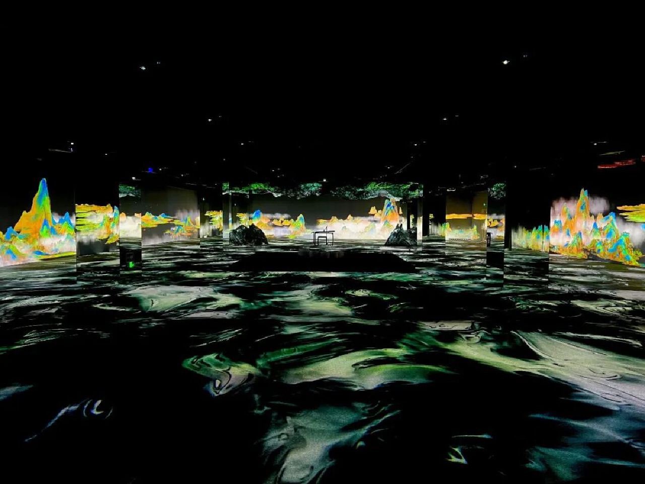 本次展览通过「科技+文化」的创新融合,精心打造10大展览单元、16个创意展项,包含沉浸交互、艺术装置、空间造景等不同形式的各类展项,构建超1000平米的数字艺术沉浸空间,为观众带来一场宋朝山水美学的光影感官盛宴!
