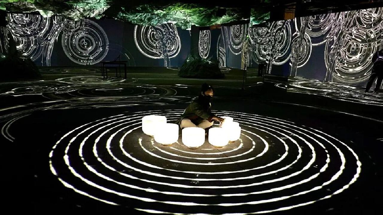 本次展览糅合了传统美学与数字科技,通过画作、造景、音乐、香气等综合体验营造,激发观众视、触、听、闻四感的体验与想象。