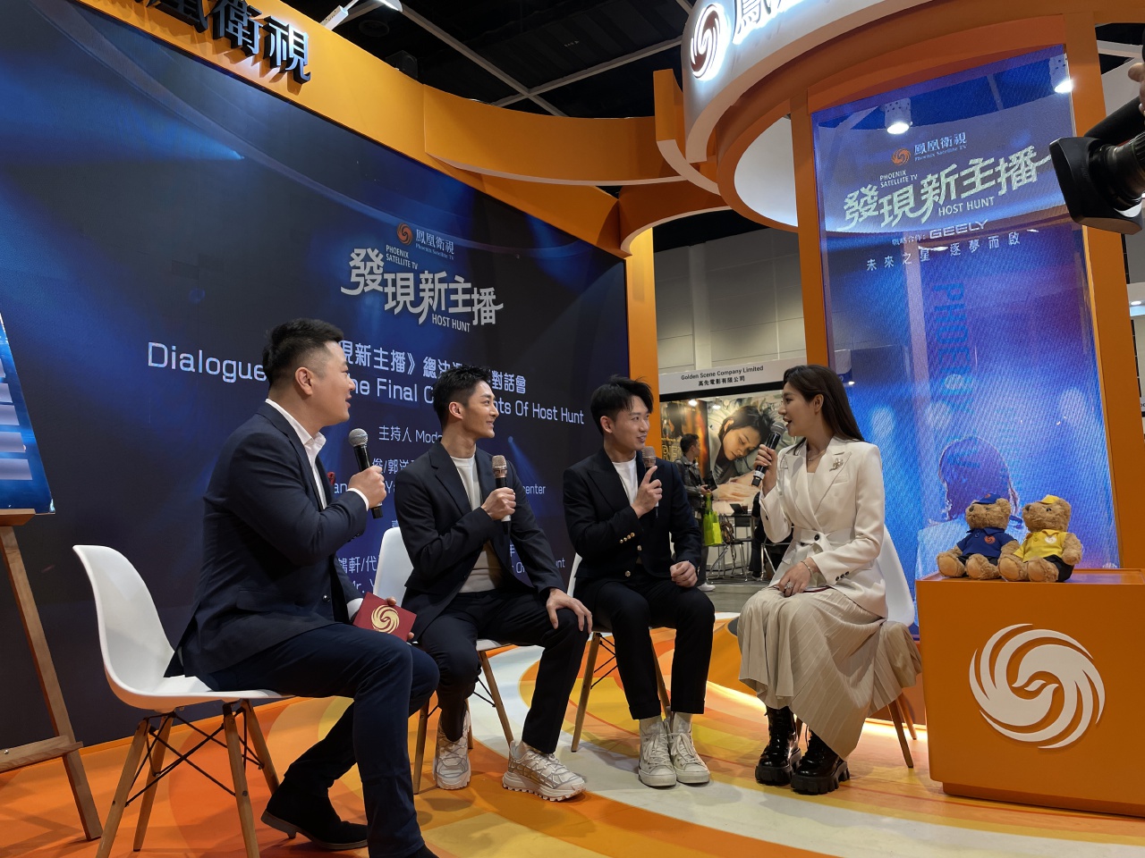 在香港國際影視展上,“發現新主播”總決選選手對話會在鳳凰衛視展位舉行。兩名在節目中脫穎而出的選手出席對話會,與鳳凰衛視主持人萬俊、郭洋子對談分享,了解成為鳳凰衛視主播需要具備哪些素養。