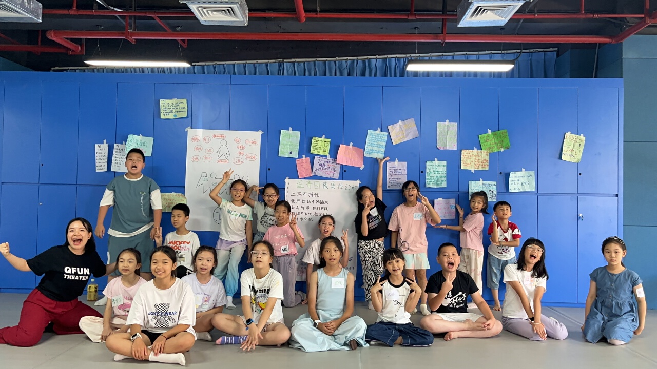 在为期两周的集训中,学员们在Qfun theater儿童实验剧团驻团导演黄慧贤与刁玉恬的带领下,开启了一段沉浸式体验戏剧文化与表演艺术。工作坊创新融合游戏教学法,强化语言表达、肢体律动、即兴创作与想象空间的拓展,实现艺术与教育的完美结合。学员们不仅深入剧场幕后,体验编剧、演员、导演等多元角色,更亲自动手参与舞美设计,实现了从台前到幕后的全方位艺术实践,以全视角理解戏剧的魅力。