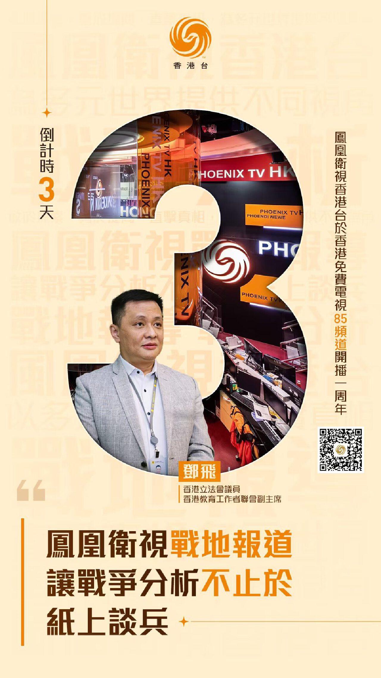 鳳凰衛視香港台自2024年4月22日於香港免費電視85頻道開播以來,以“立足香港,面向全球華人”為宗旨,拓展全球視野,擴大粵語傳播,傾力為本地觀眾提供客觀、及時、豐富的新聞資訊服務。同時,香港台矚目本地經濟民生,關注本地文化產業,與各界共同助力香港提升國際影響。鎖定85頻道,就是鳳凰衛視香港台。