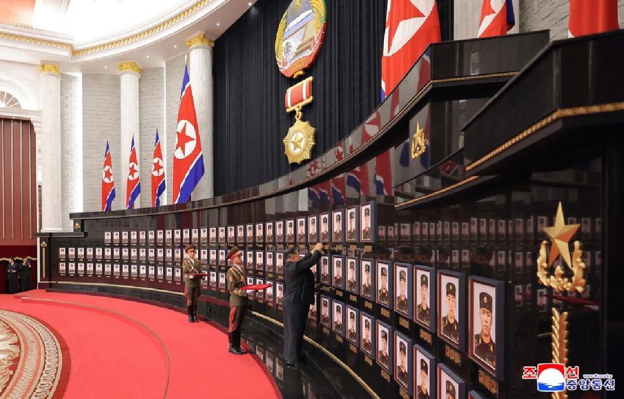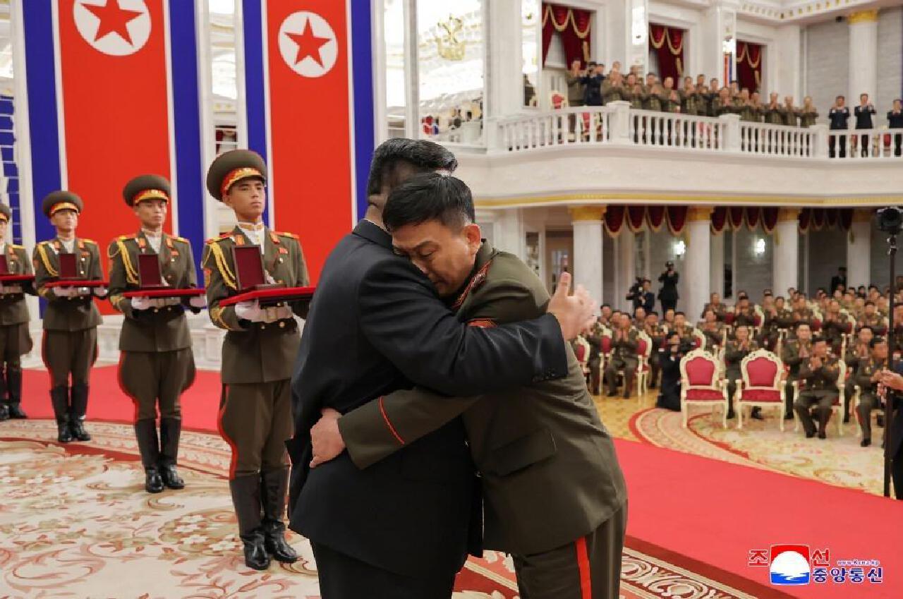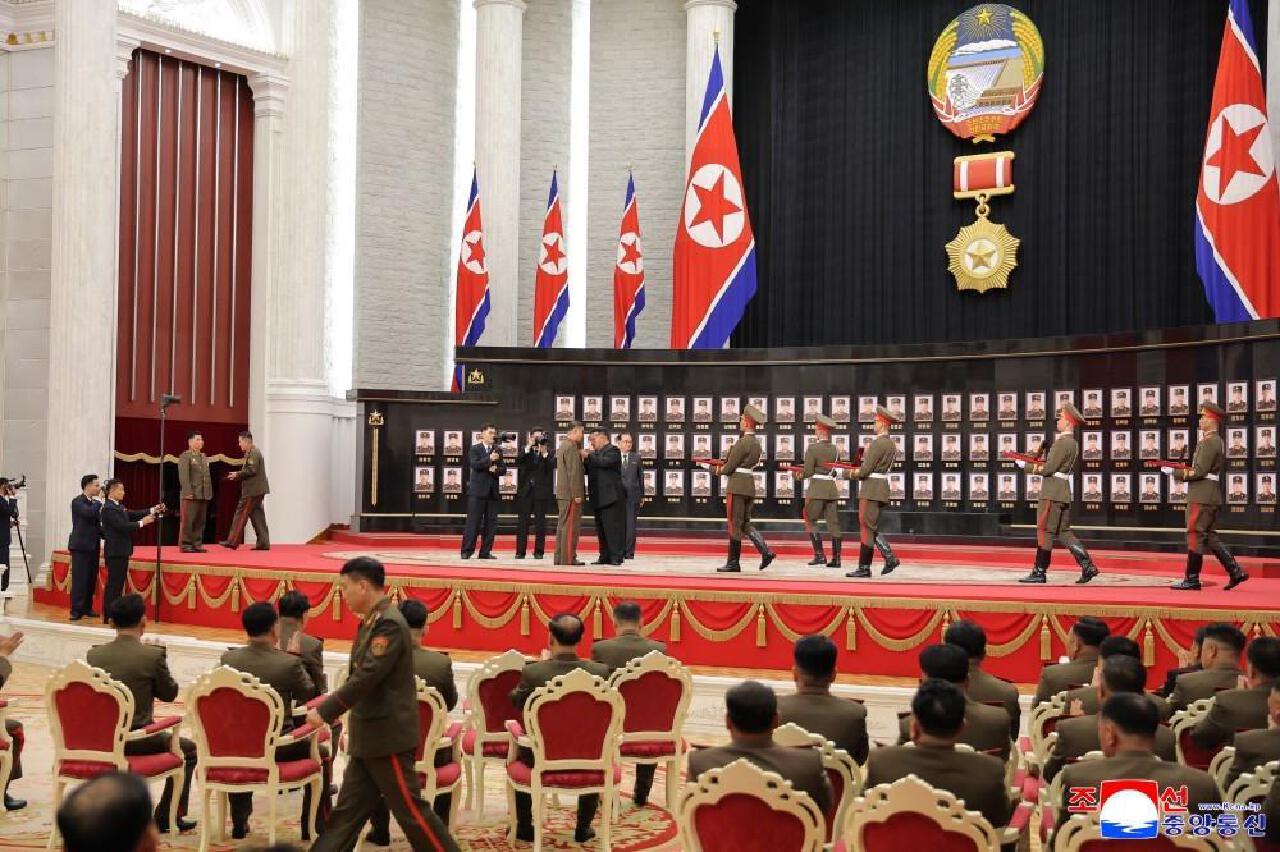 朝鮮授予在俄羅斯作戰指戰員國家勛章,”死人堆裏”爬出來的指揮官們表情都非常堅毅,在金面前,面無任何表情,更帶愁容,寵辱不驚。