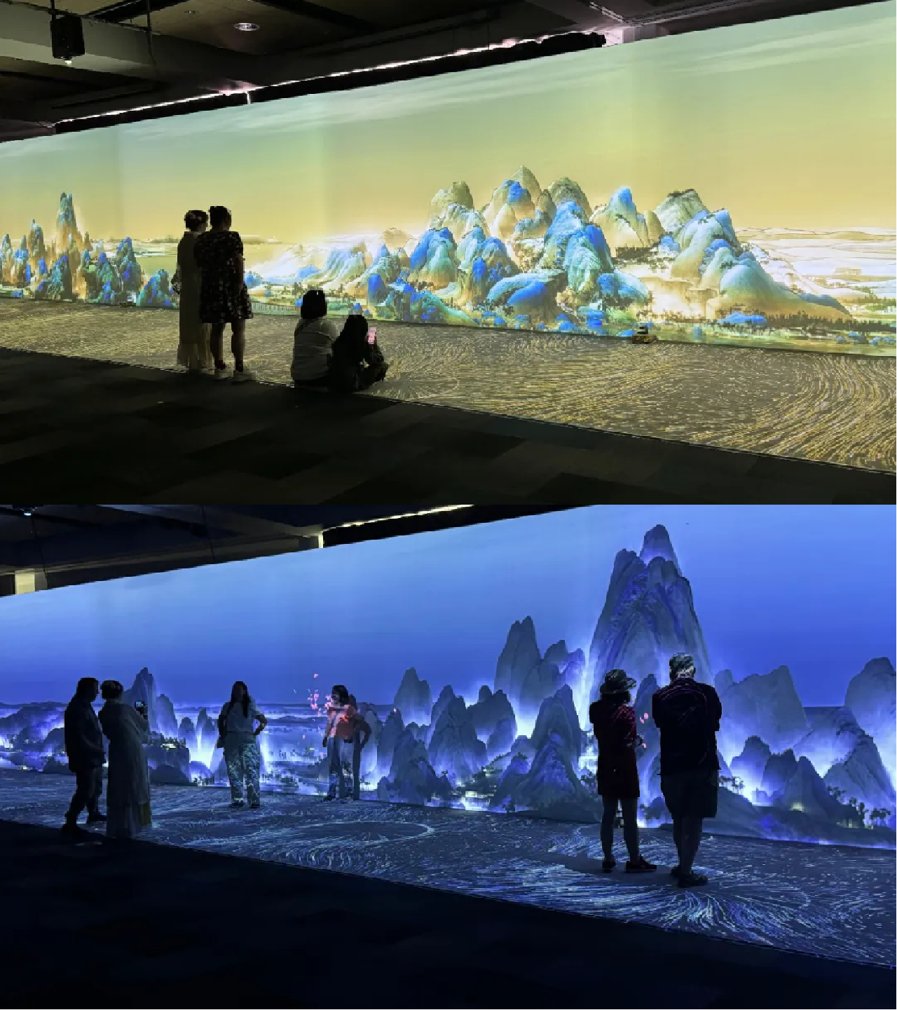 “盛世经典—画游千里江山”数字艺术展由故宫博物院和凤凰卫视联合出品,故宫出版社与凤凰数字科技携手打造。展览融合艺术、文化和高科技元素,以46米长、3.5米高的巨幕及全息投影技术生动展示了动态版《千里江山图》,是新西兰国际美术交流协会“盛世经典”系列项目继 2022 年《流动的杰作——清明上河图》多媒体展后在新西兰举行的又一次大型文物瑰宝主题数字艺术展览。