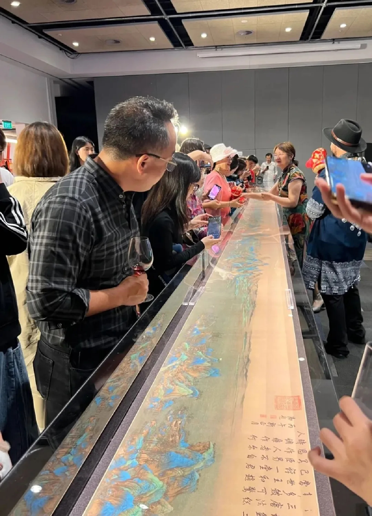 嘉宾致辞结束后,嘉宾代表们共同揭开了故宫博物院出品的《千里江山图》1:1复刻版长卷的面纱,为这场融合了数字技术与中华优秀传统文化的展览正式拉开帷幕。