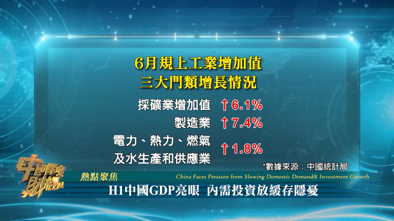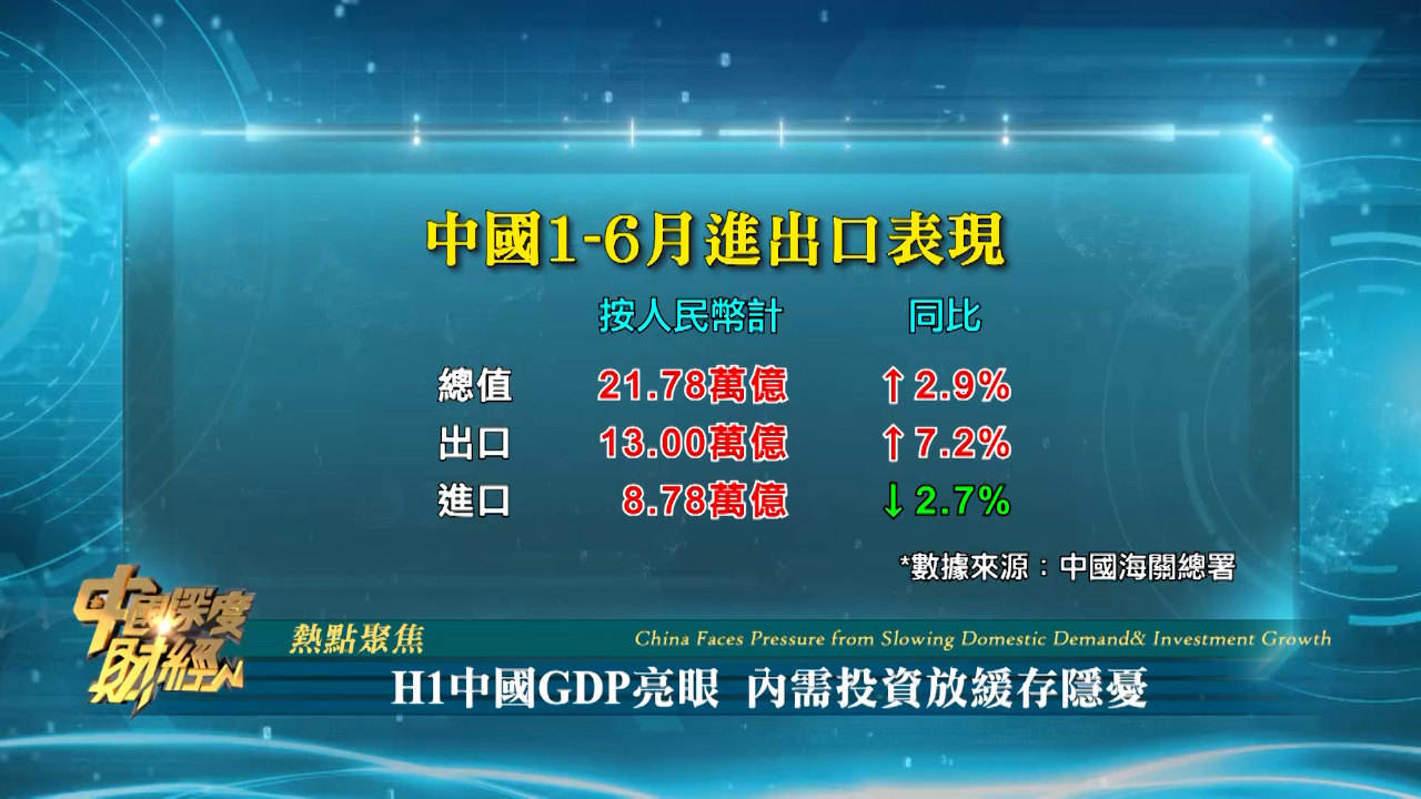 中國上半年GDP增長5.3%,而二季度經濟增速5.2%,比第一季放慢0.2個百分點,仍然好過市場預期,多項指標增速較一季度加快。中國國家統計局表示,上半年國民經濟迎難而上,穩中向好,不過運行基礎還需要加固。