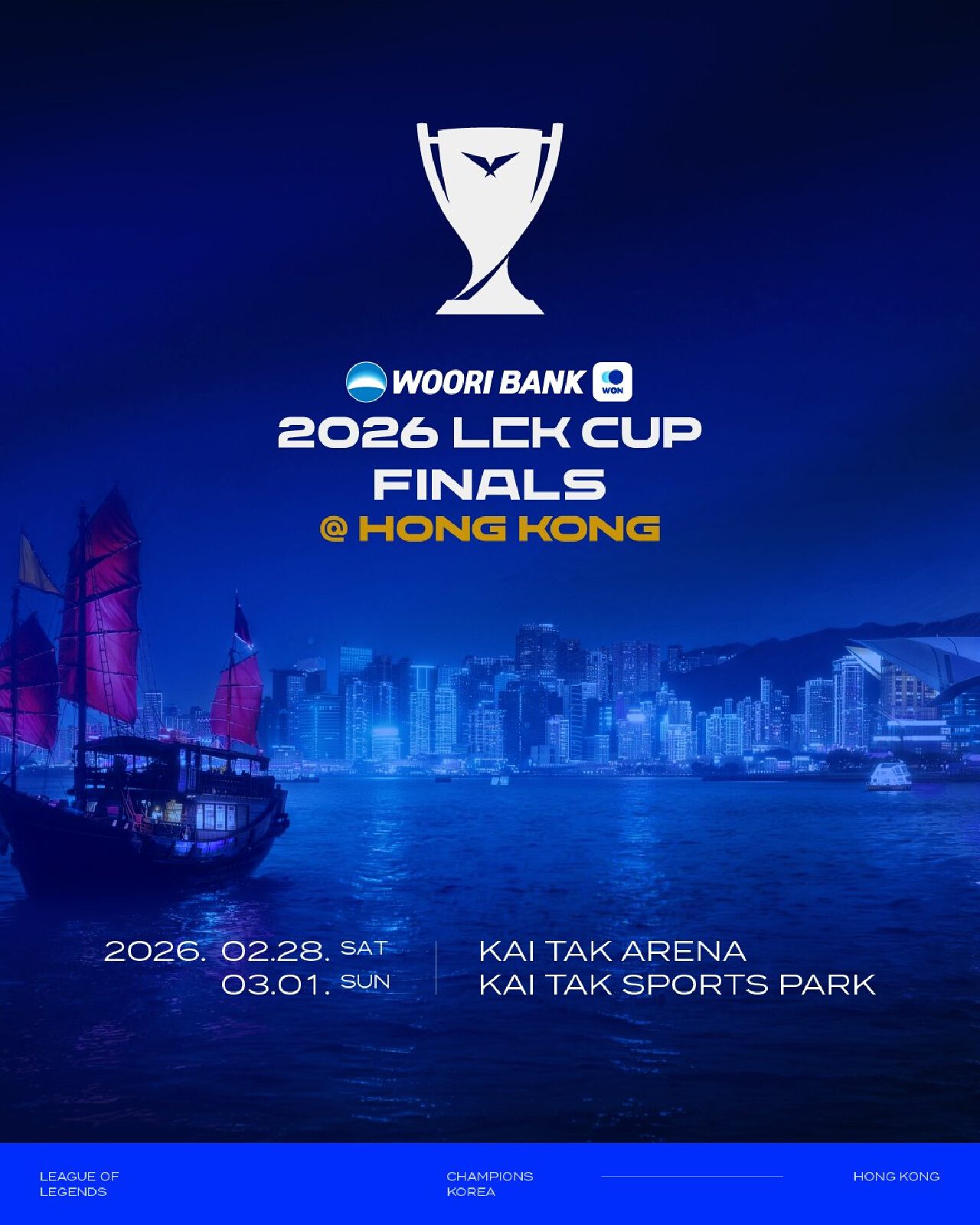 全球頂級電競賽事《英雄聯盟》韓國冠軍聯賽(簡稱LCK)2026 LCK Cup Finals in Hong Kong presented by CGA決賽首次離開韓國,選定香港作為首個海外主辦城市。賽事將於2026年2月28日至3月1日在啟德體藝館舉行,門票將於1月29日起發售。