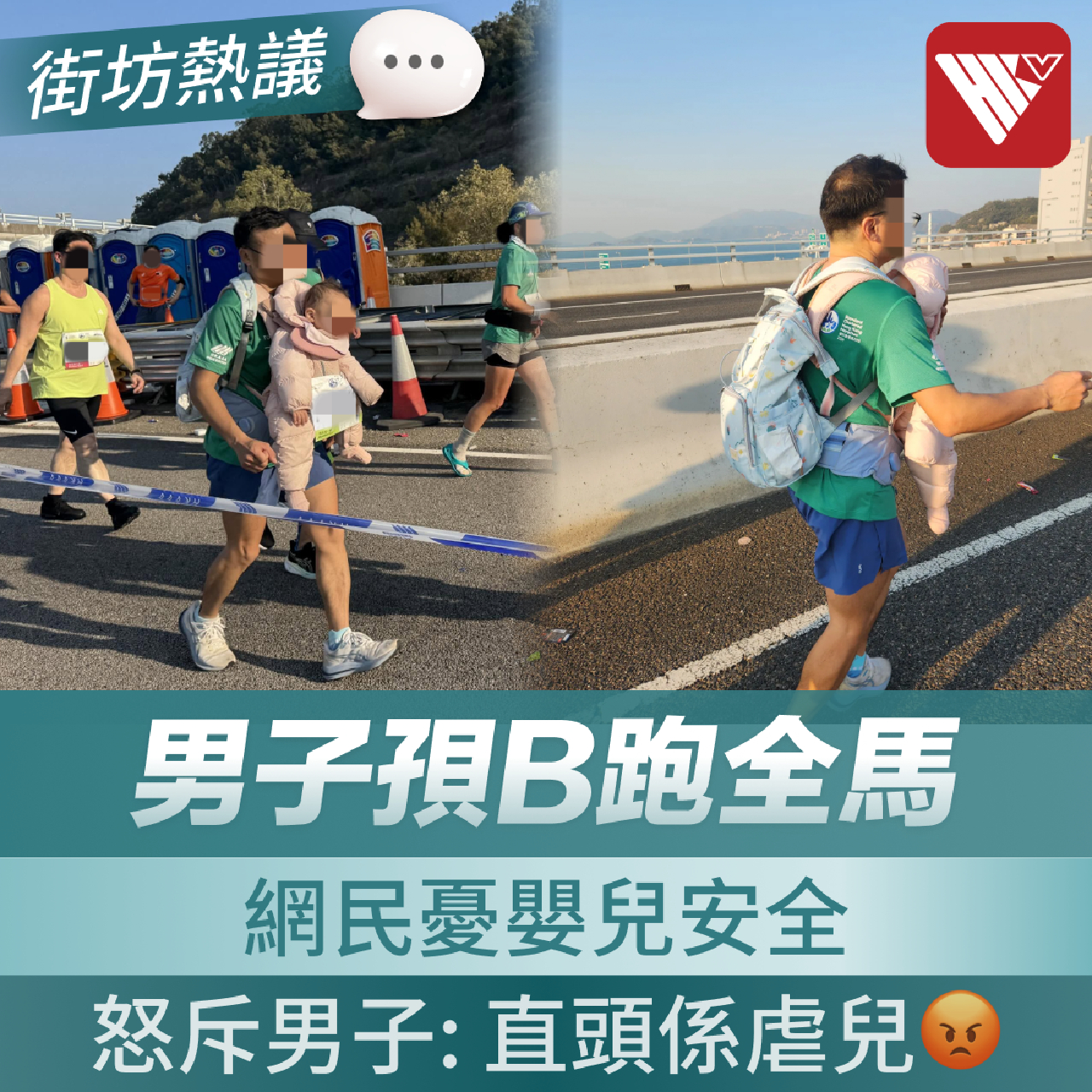 該名男跑手身後背有藍色背囊,胸前以嬰兒孭帶固定住一名嬰兒,他一邊跑一邊用左手托住嬰兒頸部,畫面令人心驚。大批網民怒斥其行為離譜,直指“呢啲直頭係虐兒啦”“真心有病”“想攞流量”;亦有人擔心嬰兒安全,“一陣仆親就大鑊啦壓住個BB”“諗起嬰兒搖晃綜合症”。