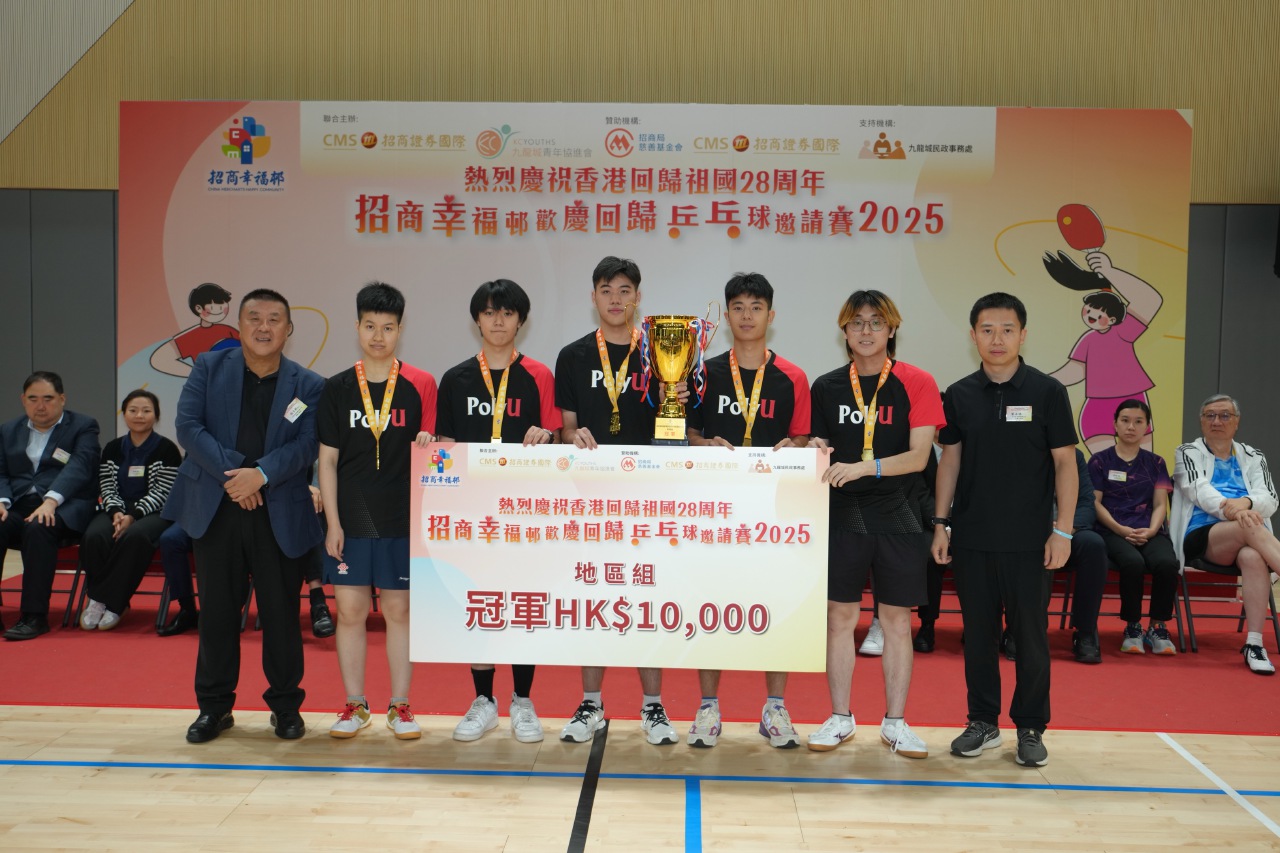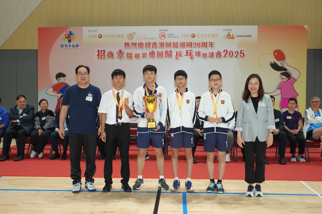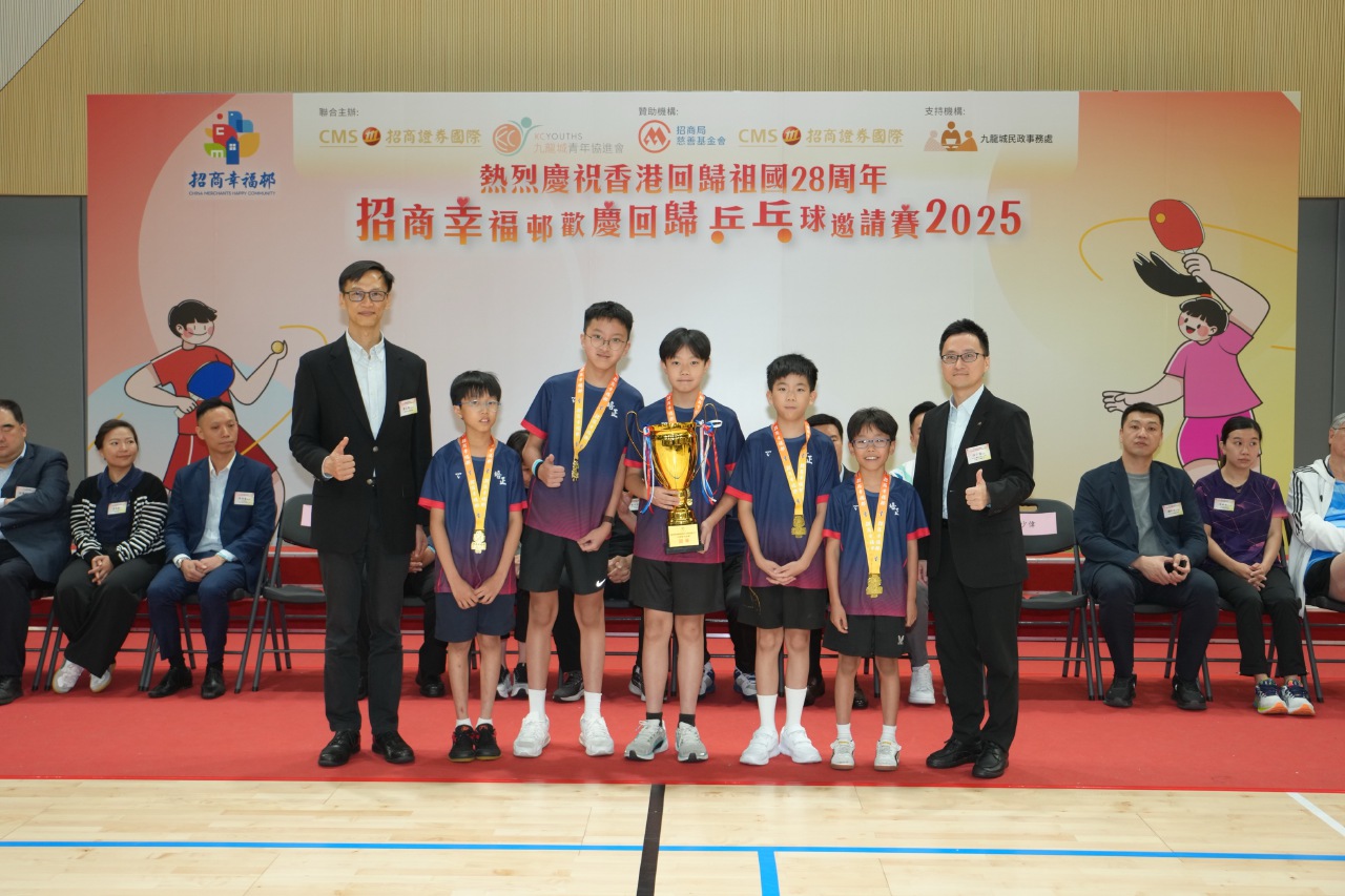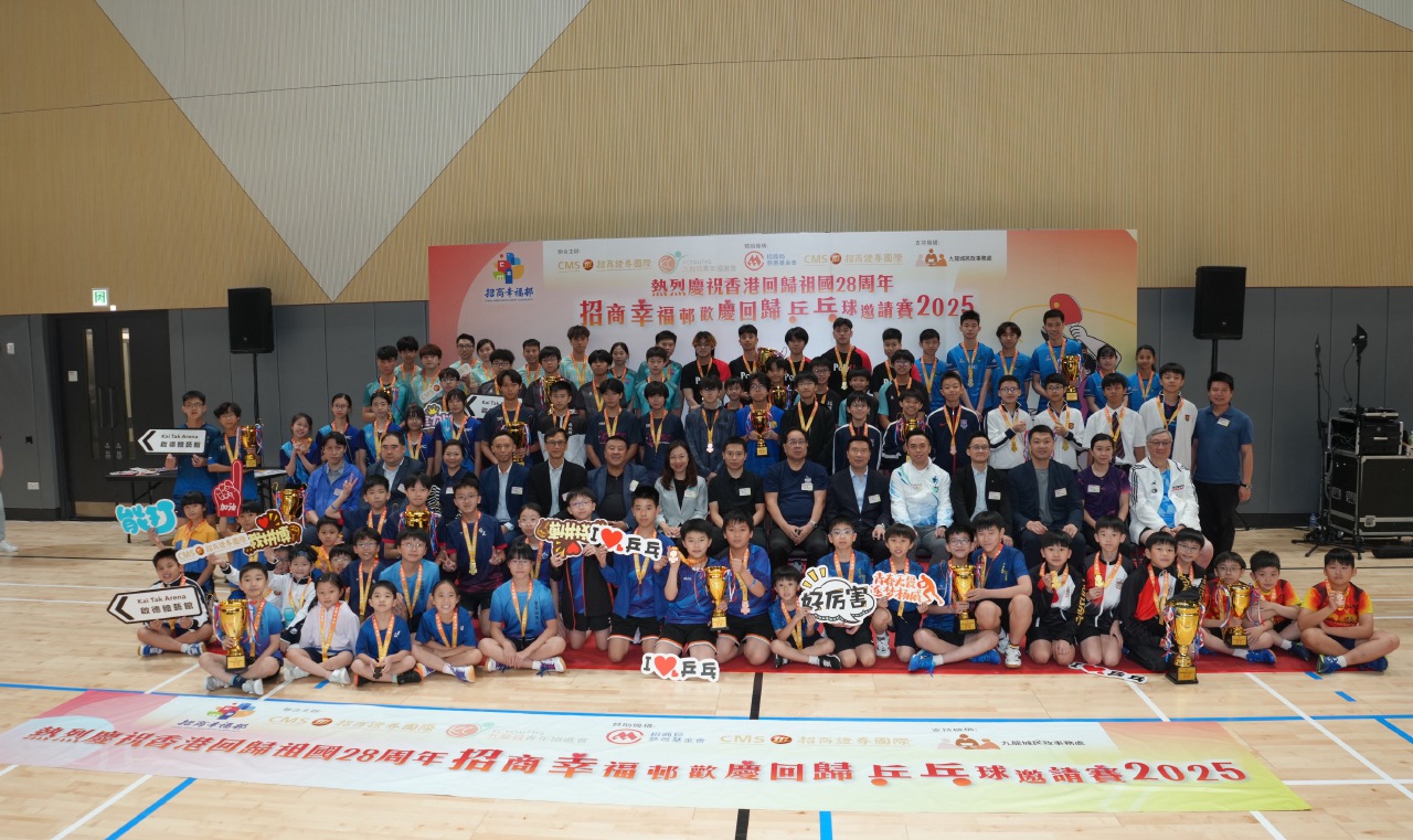 【講乒,2025年7月18日】為慶祝香港回歸祖國28周年及迎接第15屆粵港澳全運會,「招商幸福邨歡慶回歸乒乓球邀請賽2025」於7月17日在香港啟德體育園體藝館習藝坊盛大舉行。本次賽事由招商證券國際有限公司(「招證國際」)與九龍城青年協進會聯合主辦,招商局慈善基金會及招證國際共同贊助,並獲九龍城民政事務處支持,吸引全港32所中小學及16個社區團體、逾350名選手及觀眾參與,以「國球」為紐帶共慶回歸盛事。