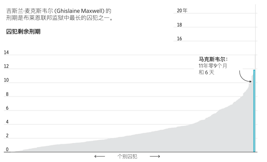 《華爾街日報》對美國監獄管理局記錄的分析發現,在布萊恩監獄600多名囚犯中,麥克斯韋的剩餘刑期排名第四。這些記錄涵蓋了9月5日至9月11日期間布萊恩監獄關押的囚犯。