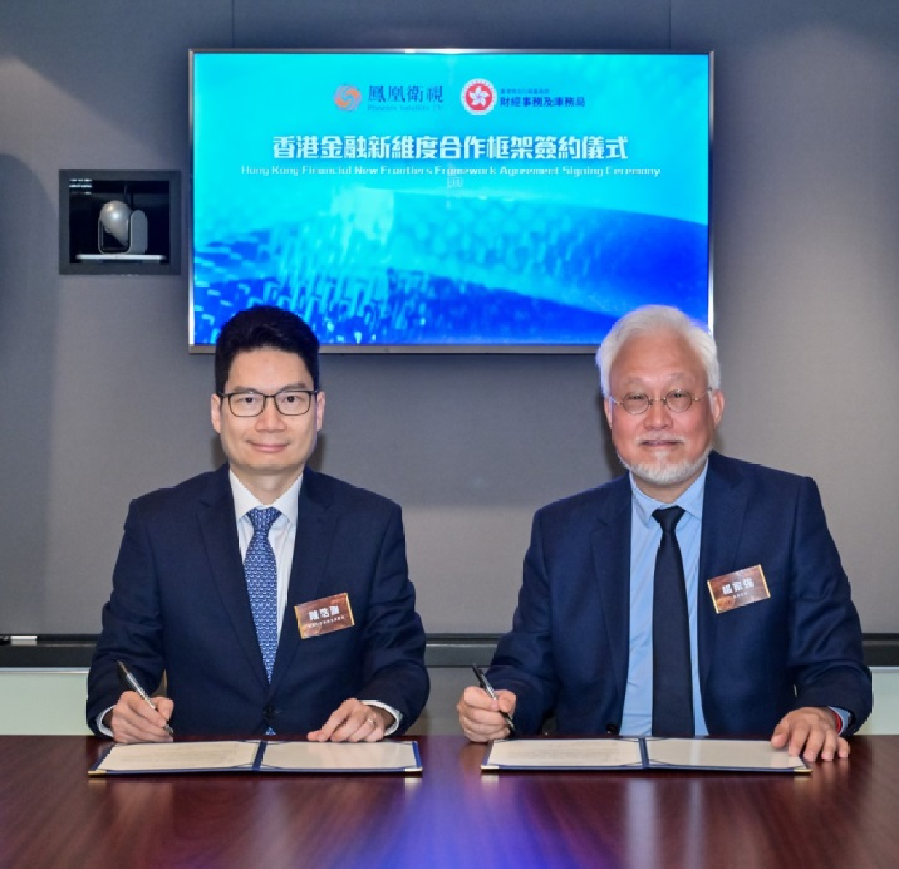 雙方當日於“鳳凰衛視香港台於香港免費電視85頻道開播一周年”慶典上舉行“香港金融新維度”合作框架簽約儀式。香港特區政府署理財經事務及庫務局局長陳浩濂以及鳳凰衛視執行副總裁兼集團財務總監楊家強,在香港特區行政長官李家超和鳳凰衛視董事局主席兼行政總裁徐威的共同見證下簽署協議。