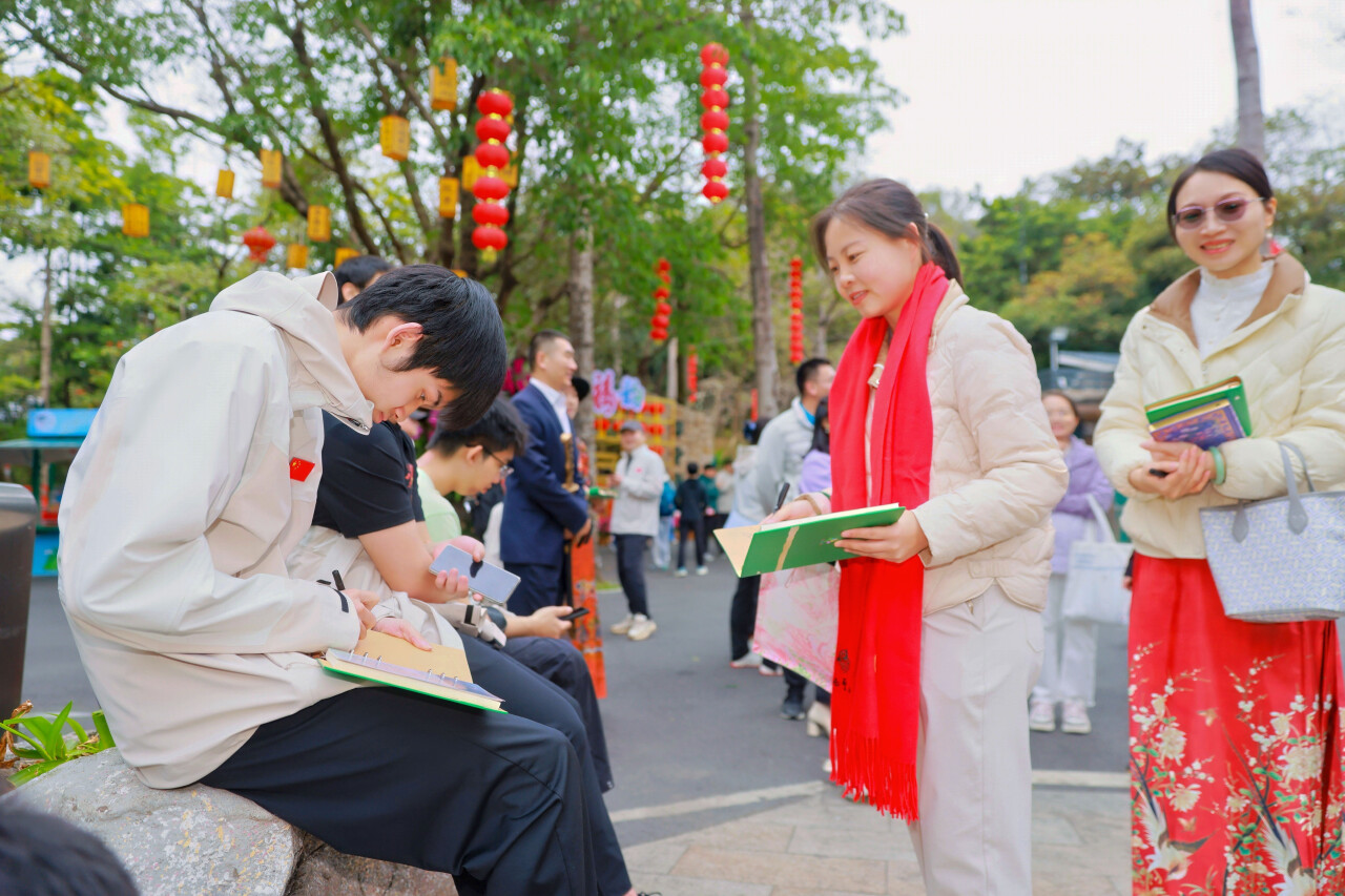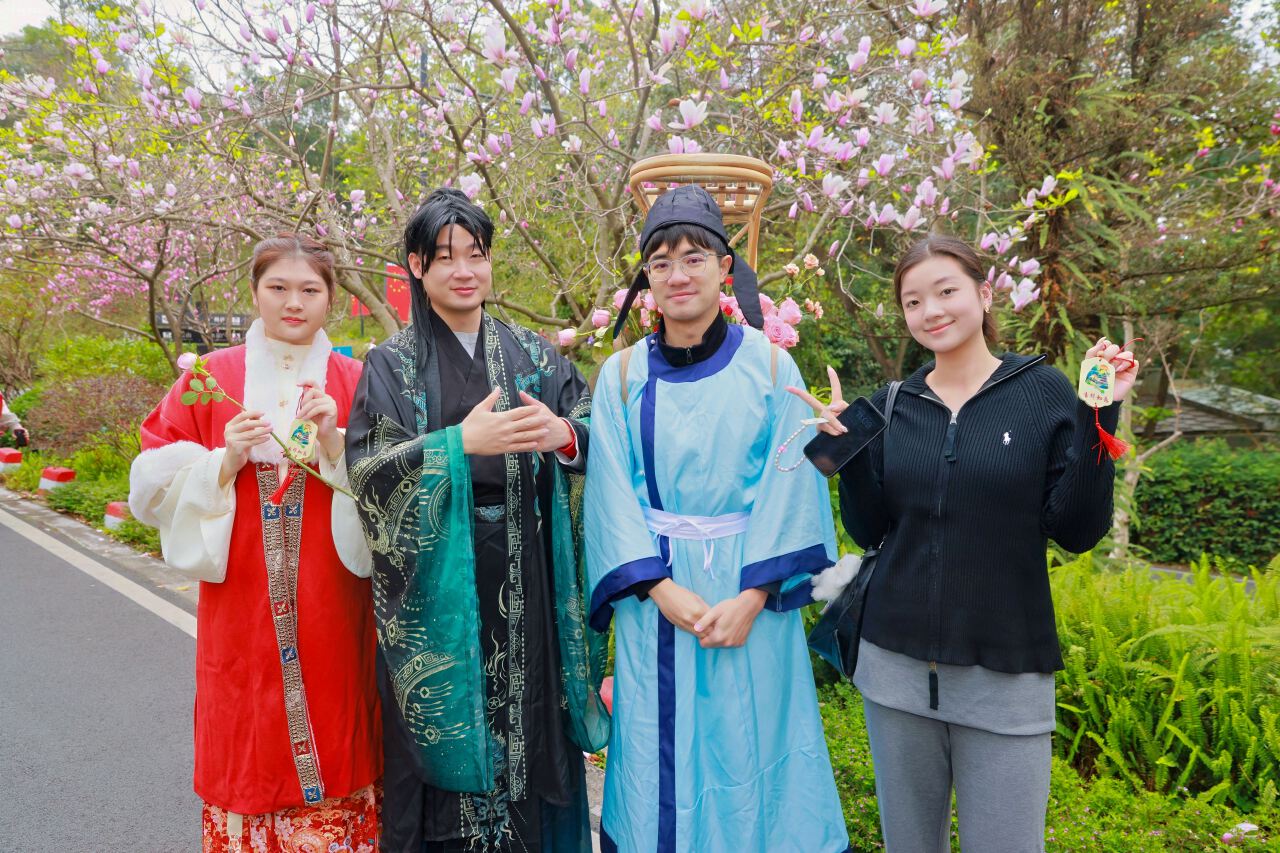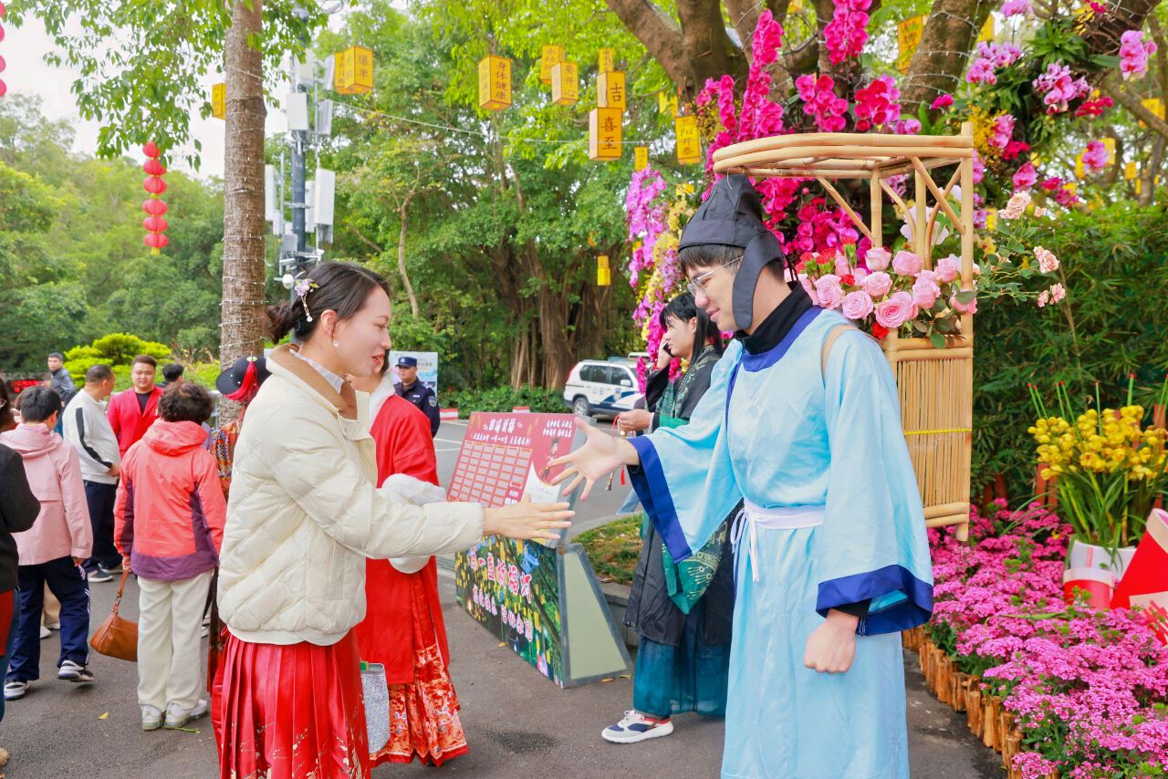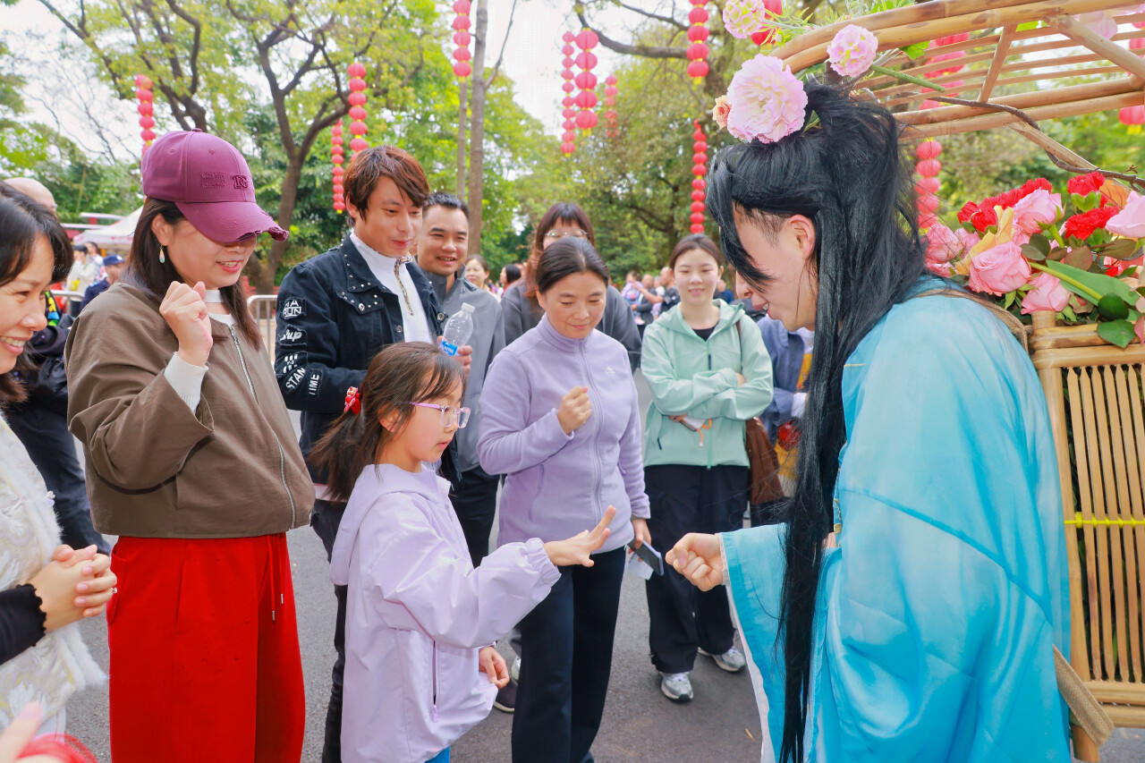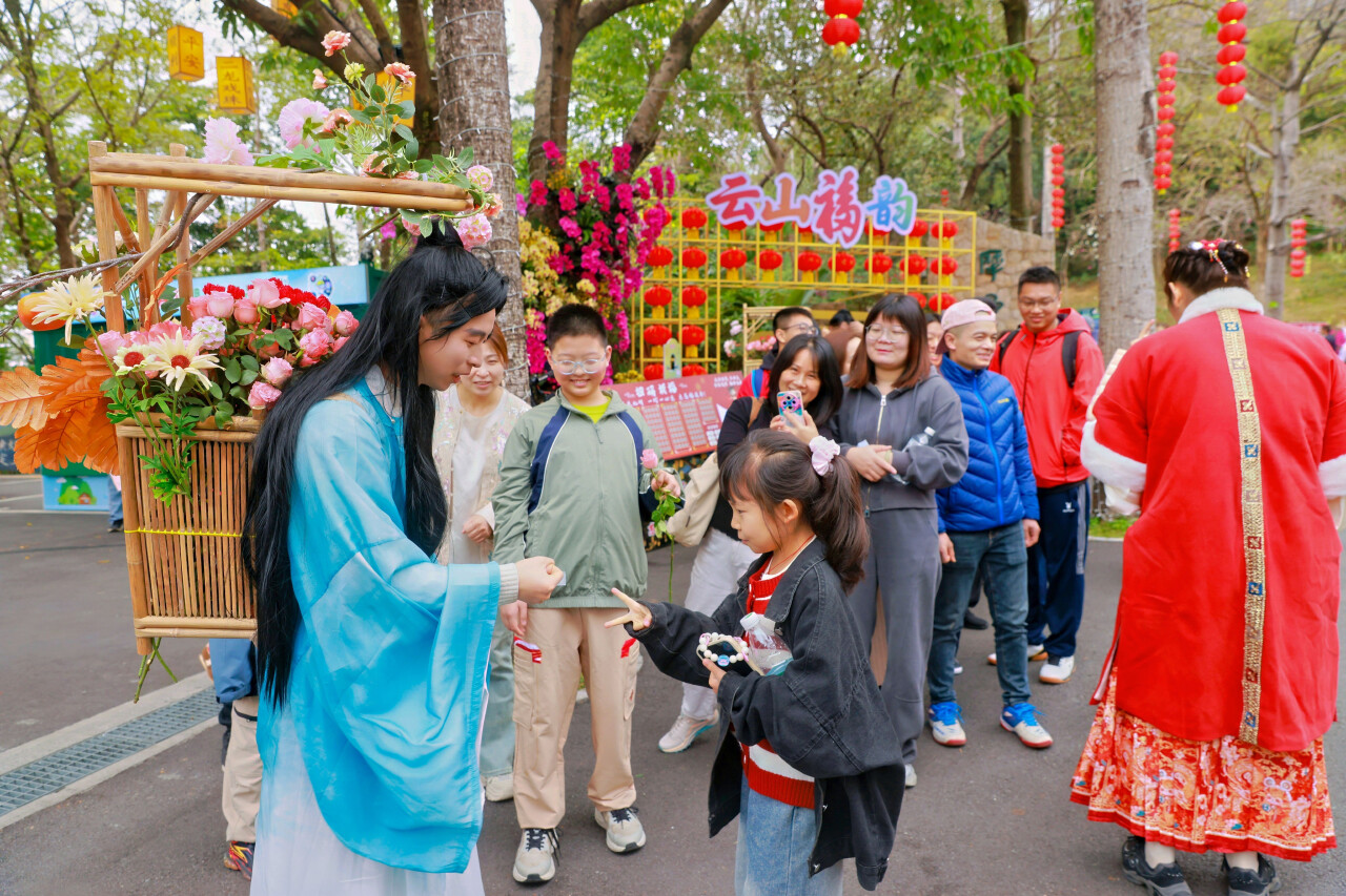 摩星岭景区将民生微实事落到文旅体验的实处,把东方古典美学与新春福韵深度融合,景区领导班子带领职工身着雅致汉服,化身“送花郎”,手持鲜花穿行于熙攘人群,以花赠缘、以香传福,为广大市民游客送上新春愉快的美好祝愿,让大家沉浸式感受传统服饰与新春氛围的独特魅力。
