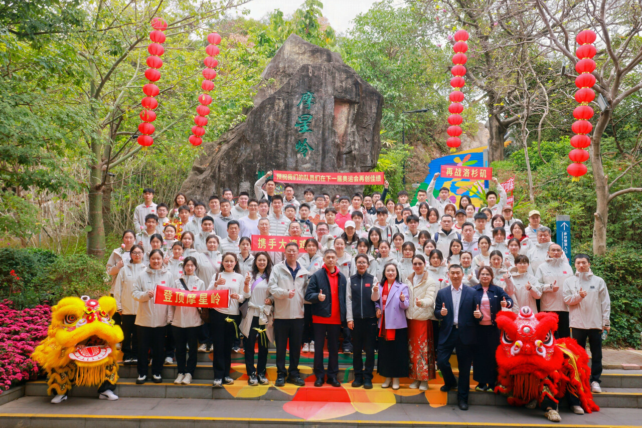 大年初一的摩星岭迎来高光时刻,奥运冠军杜丽、盛李豪、黄雨婷、谢瑜、张常鸿带领国家射击队运动员们登临云山最高峰和大家“顶峰相见”,与现场游客亲切互动、签名送福。在农历新年的第一天,奥运健儿与市民游客携手登高祈福、共赴新程,既为新春佳节添满别样光彩,更寄寓着对下一届洛杉矶奥运会的美好期许,愿运动健儿们再攀高峰、再创佳绩,为国争光!