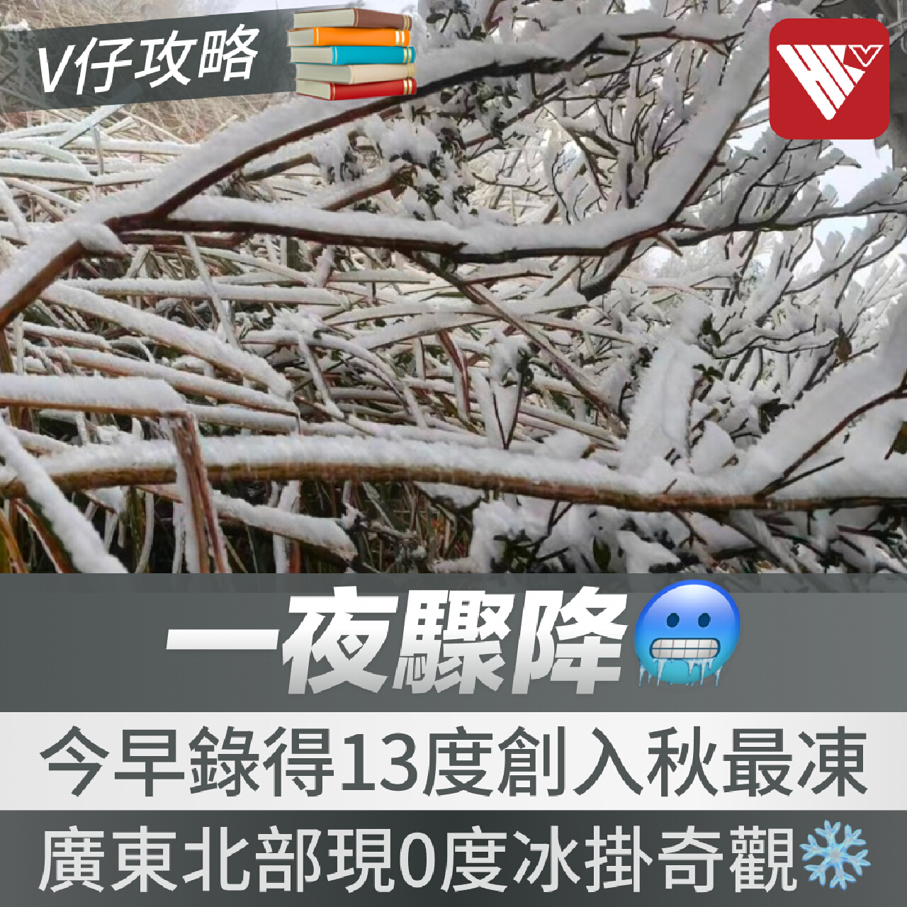 在同一股強冷空氣影響下,廣東省北部已開啟"速凍"模式。昨日(11.18),清遠高海拔山區錄得0℃左右的低溫,其中金子山山頂更出現銀裝素裹的冰掛奇觀,彷如置身冰雪世界。