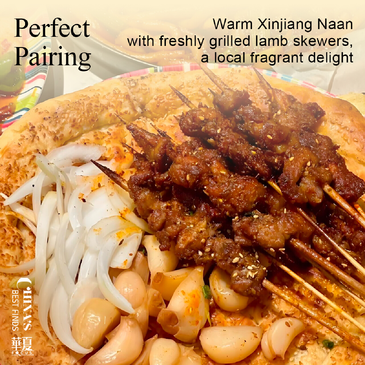 Warm Xinjiang Naan meets freshly grilled lamb skewers—a fragrant, local delight that will ignite your senses.