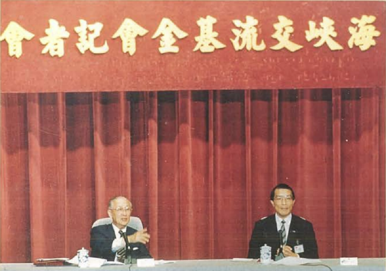 1991年11月21日,海基会成立记者会,左起辜振甫、陈长文