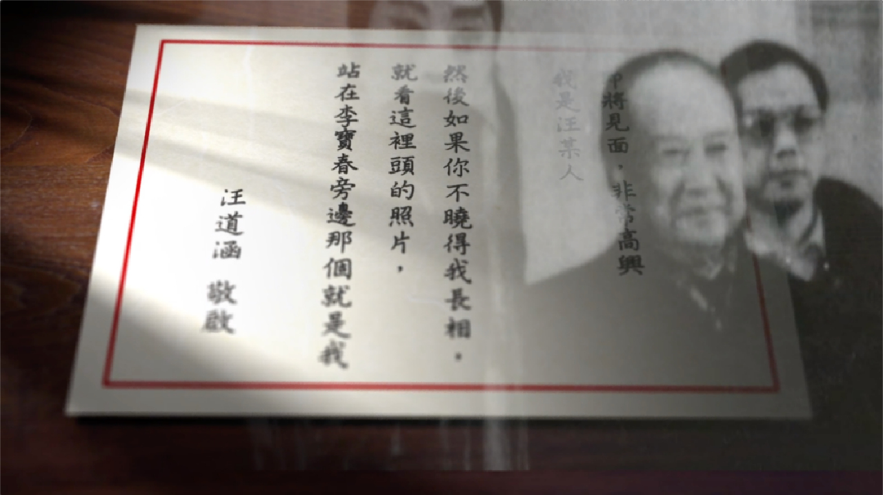 辜怀群 辜振甫之女:“那个故事很有趣,有一个京剧演员叫做李宝春,到上海去演戏,汪伯伯就去看了,他们就拍了一张照片。汪伯伯知道要跟我父亲会谈以后,他就说你帮我带一封信去给辜老师。李宝春来到台湾以后,就跑来见我父亲,给了一封信,是汪伯伯亲手用毛笔写的自我介绍。”
