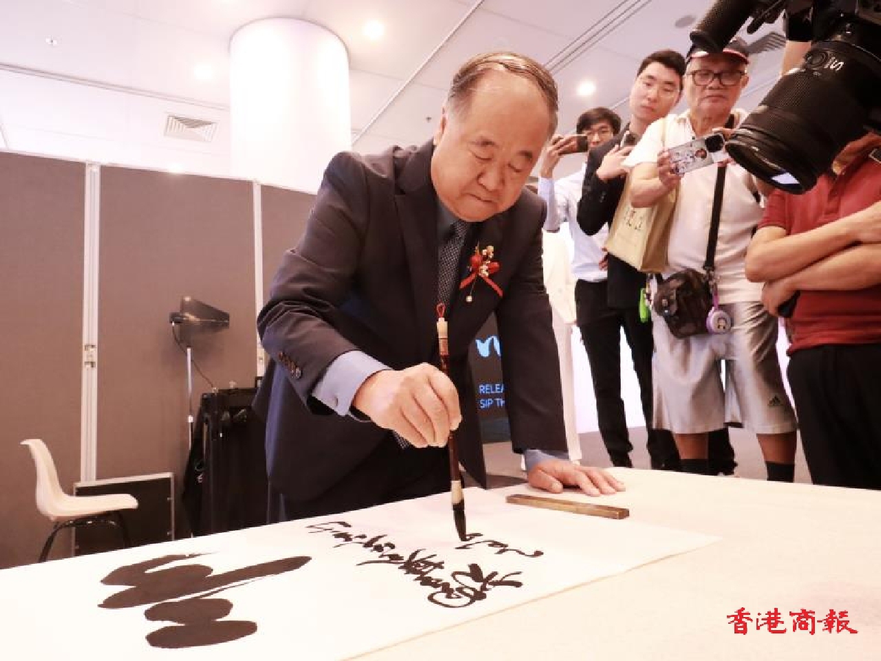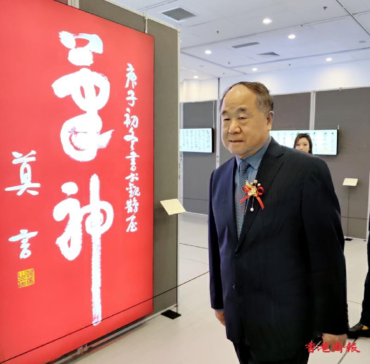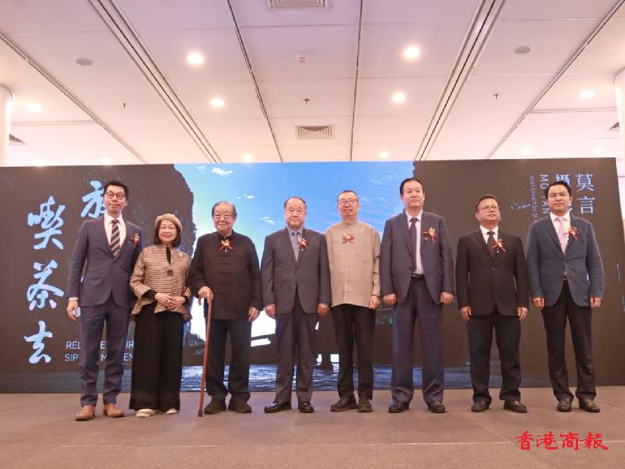 莫言及王振登台致辭,從文化傳承、藝術創新等多個維度分享對展覽的思考與期待。致辭過後,嘉賓共同上台剪綵,以莫言親手書寫的「香港萬福」作為整個展覽的啟動標誌更是對香港美好的祝願。
