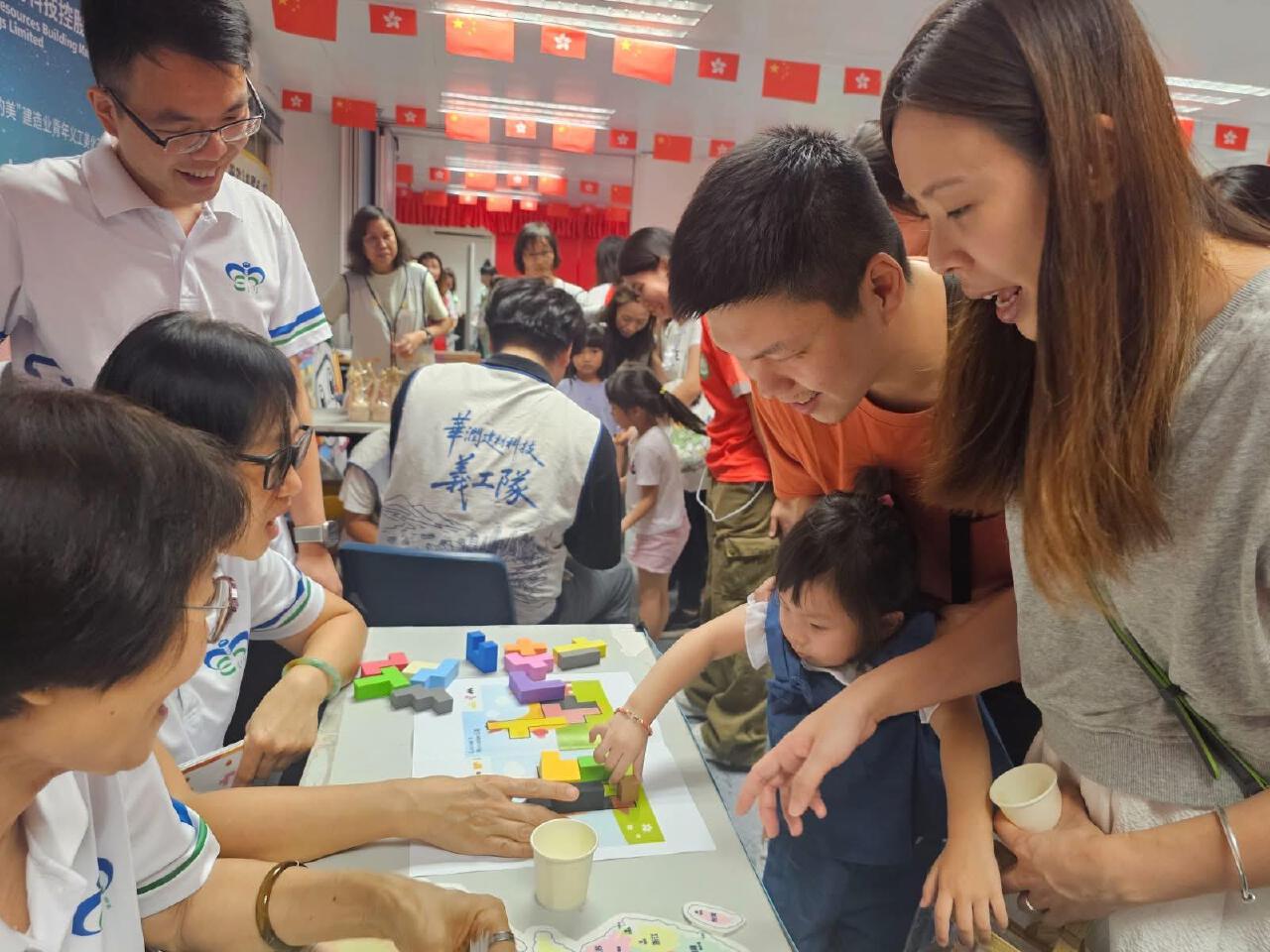 為進一步推動社區共融,同日於上水彩園邨會堂賀國慶迎中秋嘉年華活動,吸引逾600名長者、幼稚園小朋友及家長一同參與。活動內容豐富多彩,包括攤位遊戲、夾公仔機、派發爆米花及由上海徐匯香港聯誼會贊助派發福袋等,長幼共融、場面溫馨熱鬧。許多家庭表示活動非常有意義,既能感受國慶及中秋節日氣氛,亦能促進跨代交流,加深孩子對社區的認識。