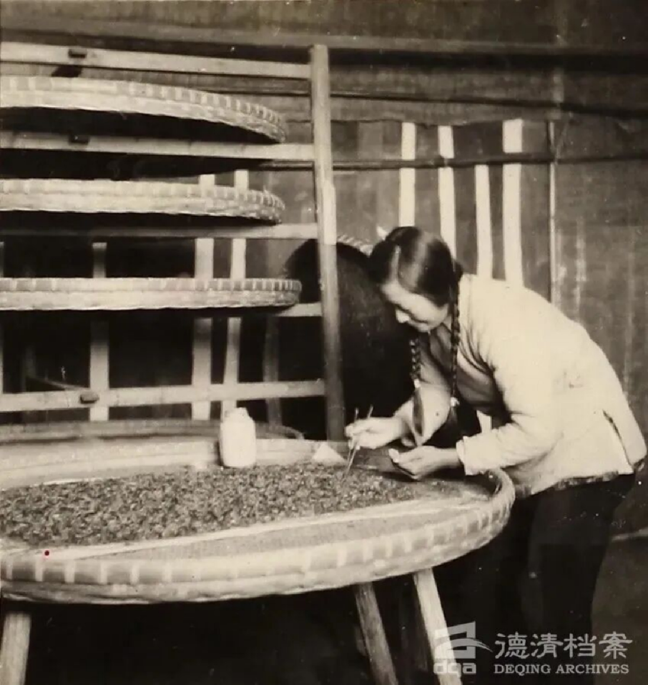 ▲ 新市公社社员在饲养晚秋蚕图源德清档案