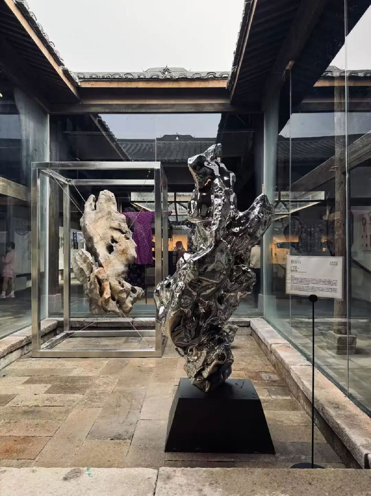 同时,展览特邀当代著名艺术家、中央美术学院教授展望与艺术家陈粉丸,创作雕塑与场地特定装置作品,以当代视角重构江南文化脉络,与历史织物展开跨越时空的对话。艺术家展望的作品《假山石 4#》立于展览中庭,与江南明清建筑相融,他在接受凤凰艺术采访时表示: