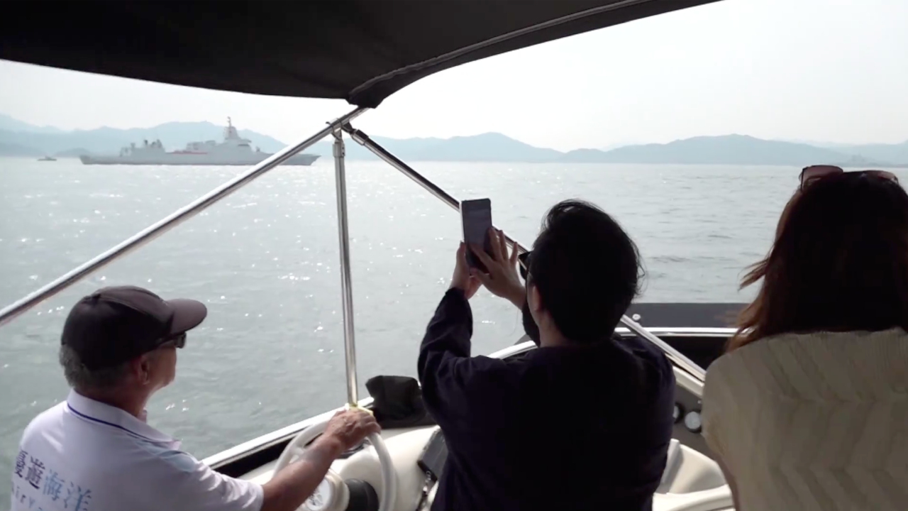 記者王雨婷早上跟遊客一同租遊艇,從尖沙咀公眾碼頭出發,前往港島西區的錨地,近距離觀賞山東艦的風采。有遊客向本台記者表示,看到以“家鄉”命名的護衛艦非常自豪。