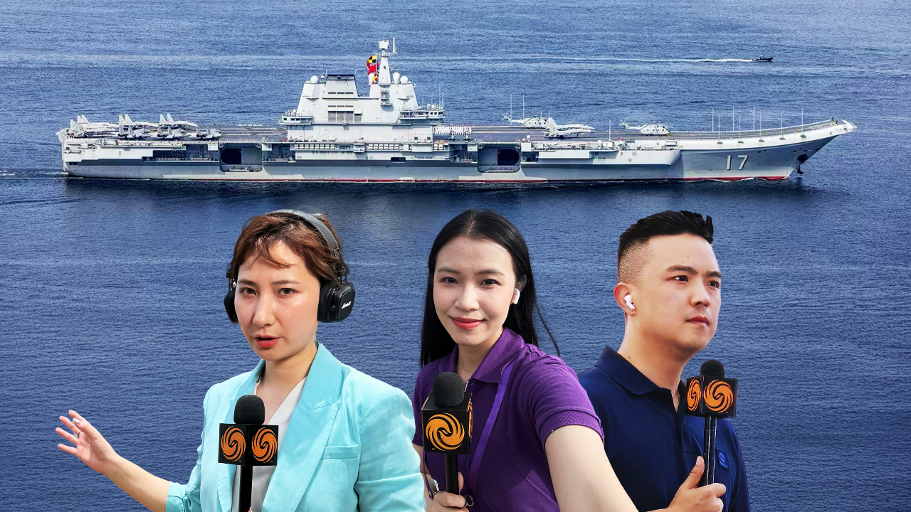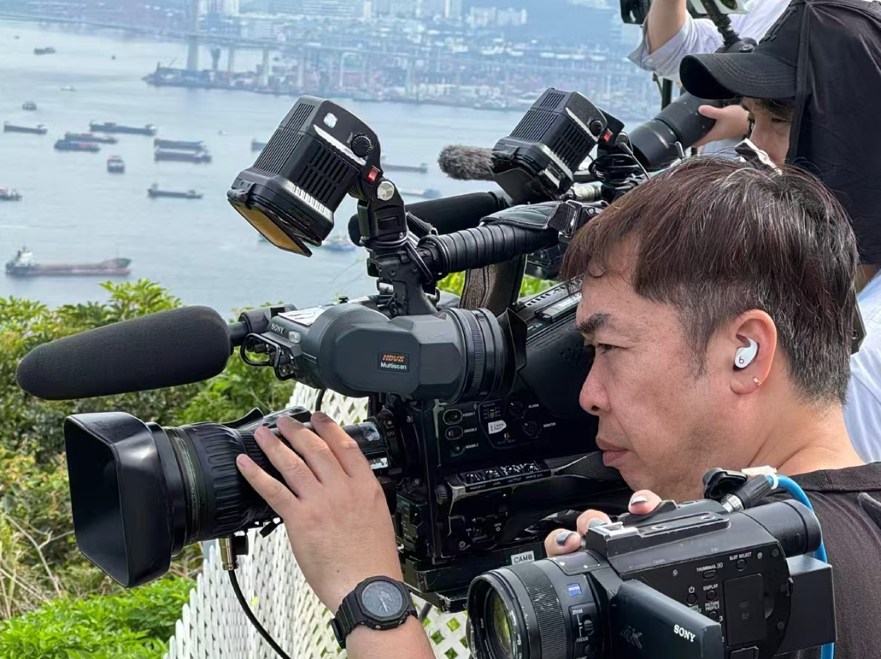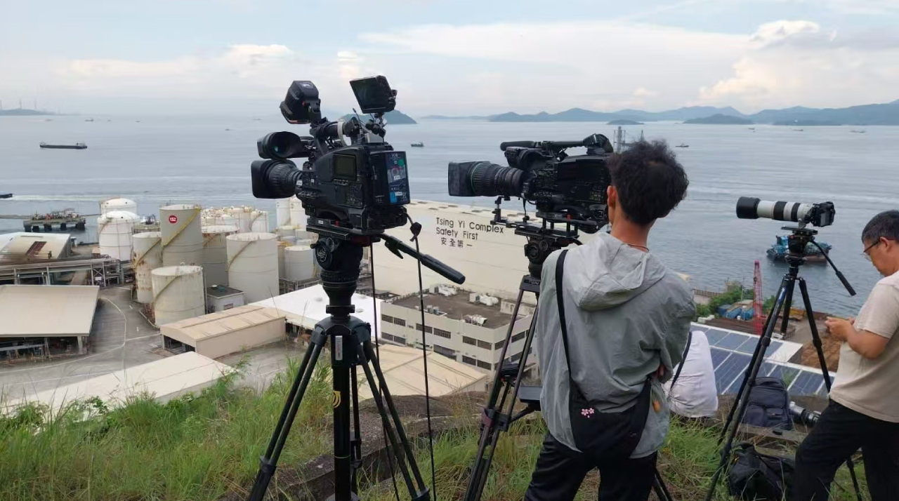 此外,鳳凰衛視攝影隊透過豐富的機位捕捉航母編隊入港的精彩瞬間,也記錄了記者們出鏡的忙碌身影。