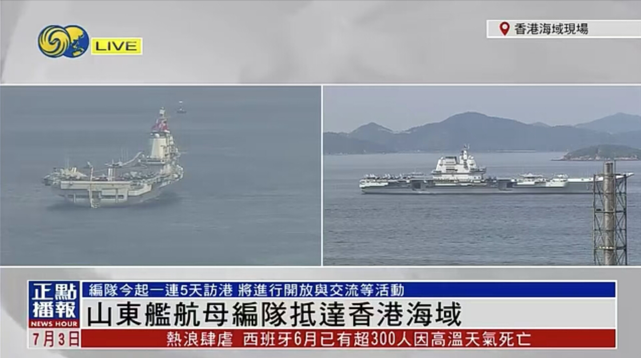 中國人民解放軍海軍山東艦航空母艦編隊於7月3日至7日訪問香港,進行開放與交流等活動。鳳凰衛視台前幕後協力合作,派出三路記者、四路攝影趕赴青衣外海、摩星嶺、海怡半島等地進行全方位、多角度的追蹤報道,“上山下海”為觀眾帶來了深入立體的記者觀察。