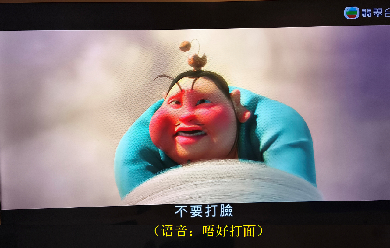 粤语的太乙真人说:“唔好打面”,字幕是:“不要打臉”。