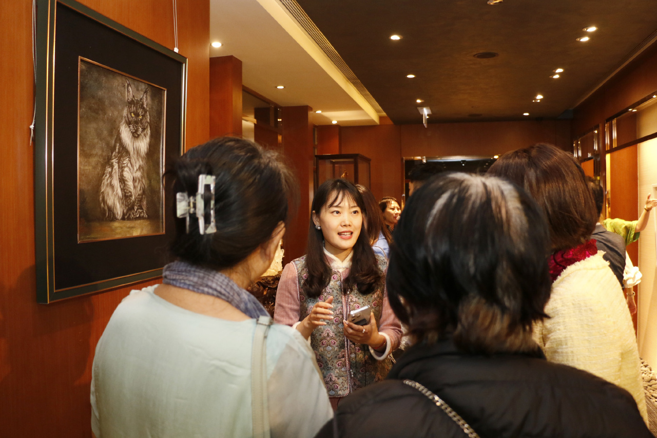 景德鎮非遺傳承人孫德娜的瓷板畫等陶瓷藝術亦將展出,她不僅有極高的藝術造詣,更從新彩、粉彩到琺瑯彩中不斷進行研究和技術創新,精益求精。景德鎮這座有著千年歷史的藝術之城,是藝術家們向往的熱土。孫德娜從小就喜歡美術,高中開始系統學習素描水粉。2005年考入景德鎮學院,在陶瓷藝術設計專業學習。學習期間她對國畫花鳥更感興趣,就將主攻方向定為新彩,因為新彩繪畫顏料更靈活,可塑性更強,能展現油畫的豐厚和國畫的清雅。孫德娜是江西省陶瓷藝術大師,也是景德鎮手工製瓷技藝「新彩花鳥」非物質文化遺產傳承人,她工於花鳥、走獸、人物,作品形神兼備,栩栩如生。