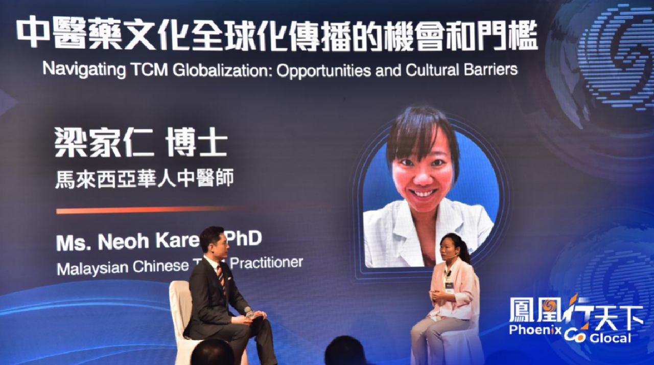 在論壇特設的中醫藥全球化對談環節中,鳳凰衛視主持人李科夫對鳳凰衛視大型紀錄片項目《四海中醫》進行了推介,並與紀錄片中的嘉賓、馬來西亞知名華人中醫師梁家仁博士,圍繞“中醫藥全球化的機遇與門檻”展開了深入對談。