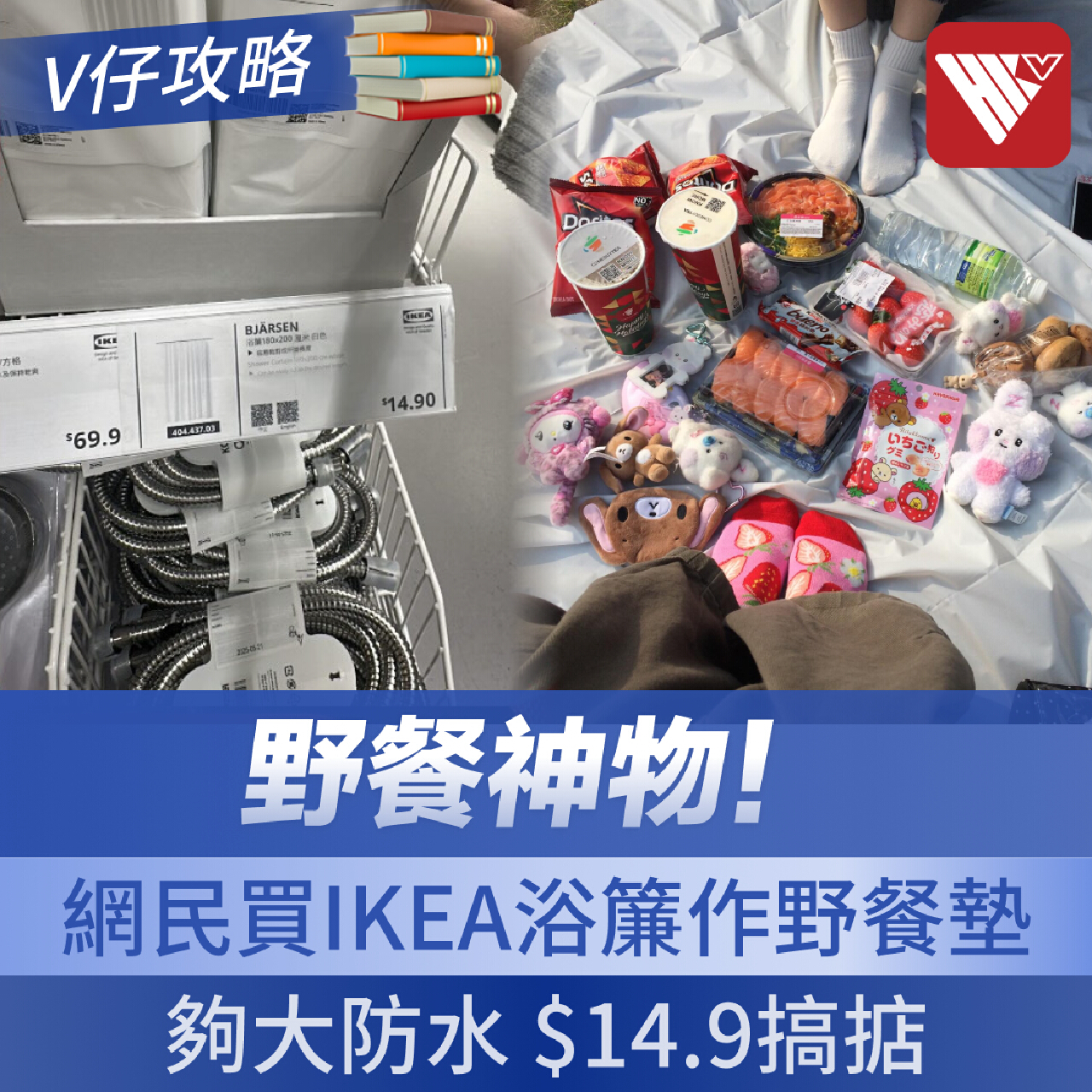 想與朋友野餐,但沒有適合的野餐墊怎麼辦?近日有網民在社交平台分享“秘訣”——用IKEA浴簾代替野餐墊。她指出,IKEA浴簾“幾靚又實用,坐得又幾舒服,仲要$15都唔使,同埋防水,倒瀉嘢飲都唔驚”。