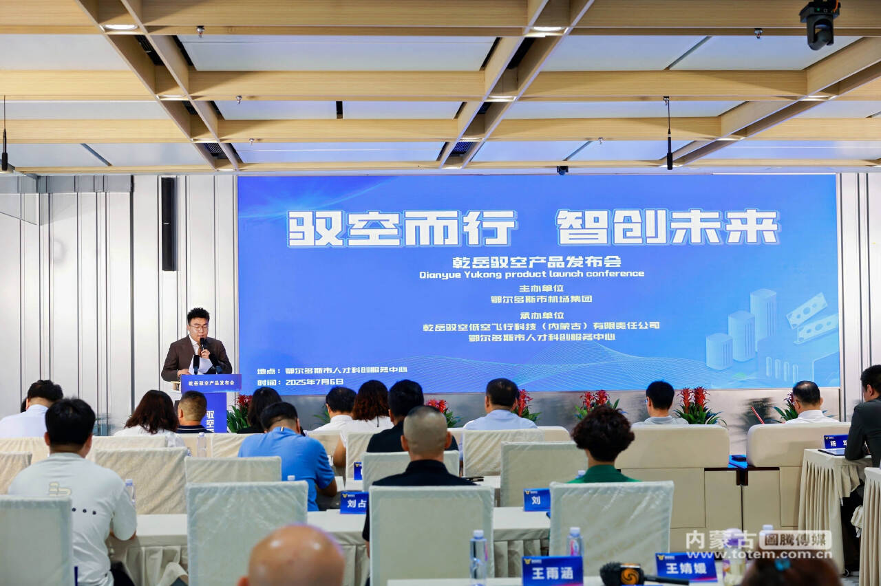 7月6日,由鄂尔多斯机场管理集团有限公司联合乾岳驭空低空飞行科技(内蒙古)有限责任公司联合主办的乾岳驭空产品发布会在鄂尔多斯市人才科创服务中心举行。