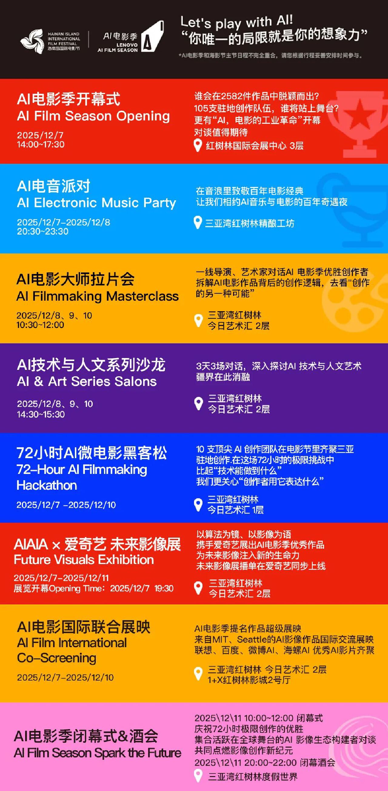 从更宏观的层面看,把这样一个AI电影季落在三亚,并嵌入海南岛国际电影节的框架,显然并非偶然。2025年,正是海南自由贸易港全岛封关运作的关键之年。在这样的节奏下,选择用AI电影季作为文化板块的“实验室”,恰好与自贸港的整体定位同频:对外,以AI这一全球通用的技术语言,邀请国际创作者与资本落地;对内,推动本地文旅、科技与影视产业的融合,为未来的产业生态预演新的可能。