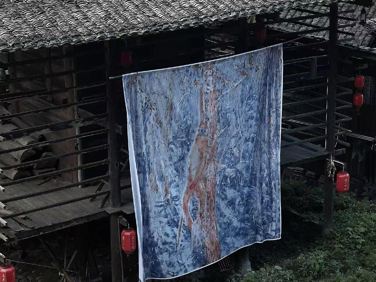 此次展览学术主持裴满意先生在采访中进一步阐释道:“‘寻脉造山’不仅是地质运动的隐喻,也是一种文明自觉的文化重构行为。我们的展览长期以来习惯于在‘白盒子’空间中去呈现,形成了一套高度视觉化、观念化的展示语言。然而,这种单一化的空间不仅压缩了艺术的多维经验,也疏离了艺术与现实生活的连接。为了突破这一限制,‘寻脉造山’选择将贵州的大利侗寨古村落作为展览空间,在一种东方园林式的活态空间中去呈现当代艺术。大利侗寨就像一幅宋画,它充分体现出东方人与自然和谐共处的生存智慧,也是东方文明‘天人合一’理念的鲜活体现。东方人的展览,应该要有东方人该有的呈现方式,要把天地纳入进来,在大自然,在天地之中去创造与呈现艺术,像逛园林那样看展览,可以移步换景,才更有意思。”