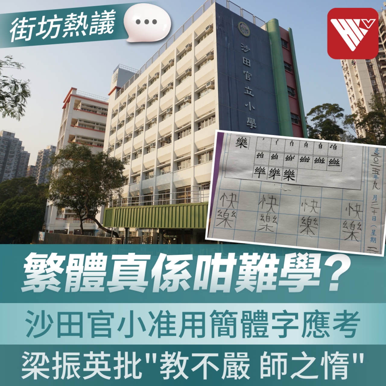 沙田官立小學允許學生在測驗及考試中使用簡體字,引發社會廣泛討論。有家長指出,學校因插班生錯字問題而推新措施,對本地學生不公。對此,前行政長官梁振英在社交平台發文直言:“既然來到香港,為什麼不努力學繁體字?”