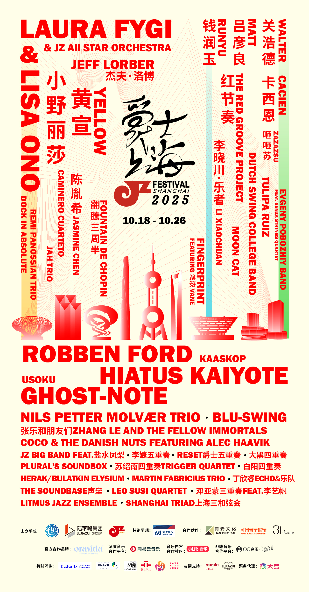 作為亞洲規模領先、中國最具影響力的爵士盛會,2025年第21屆爵士上海音樂節於2025年10月18日至26日,以「爵士上海·音樂世博」為主題,前灘為核心,輻射全上海,帶來一場前所未有的音樂盛宴!