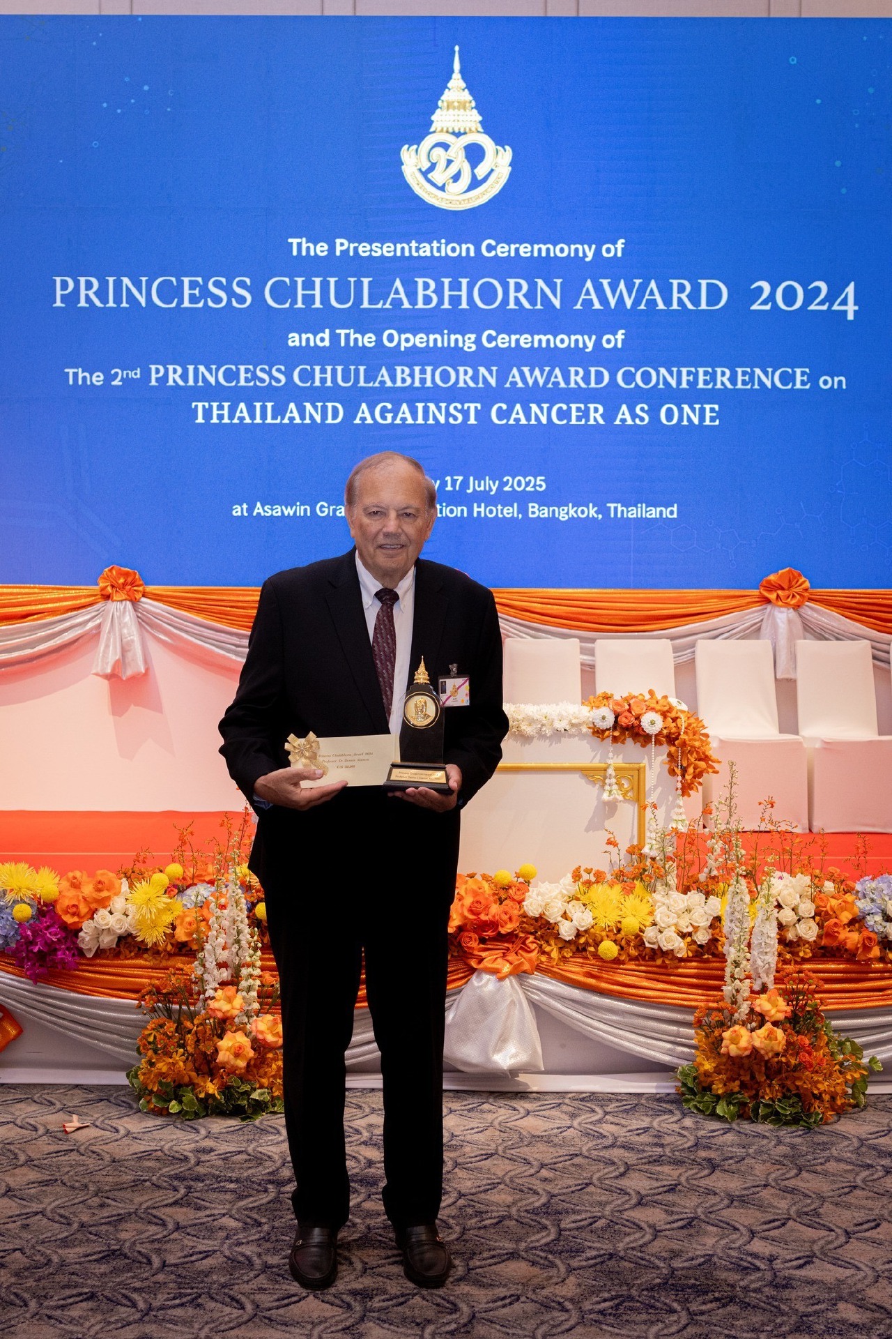 2024年朱拉蓬公主獎頒獎典禮7月17日在曼谷舉行,美國腫瘤學家Dennis J. Slamon教授獲得這一獎項,以表彰其在癌症治療領域,特別是乳腺癌靶向藥物研究方面對人類健康作出的傑出貢獻。