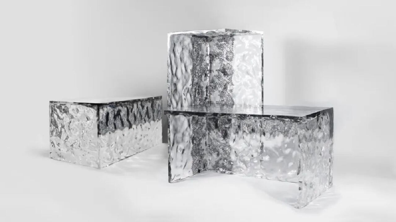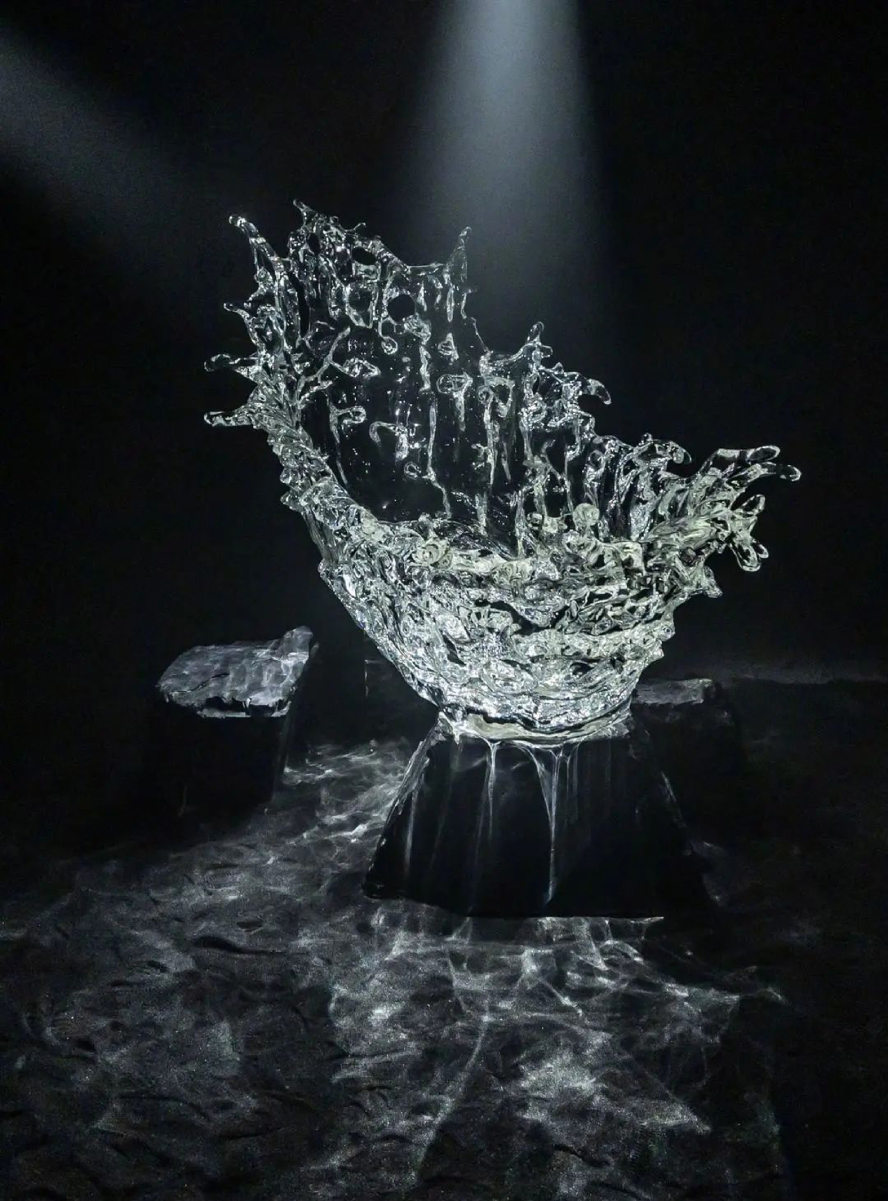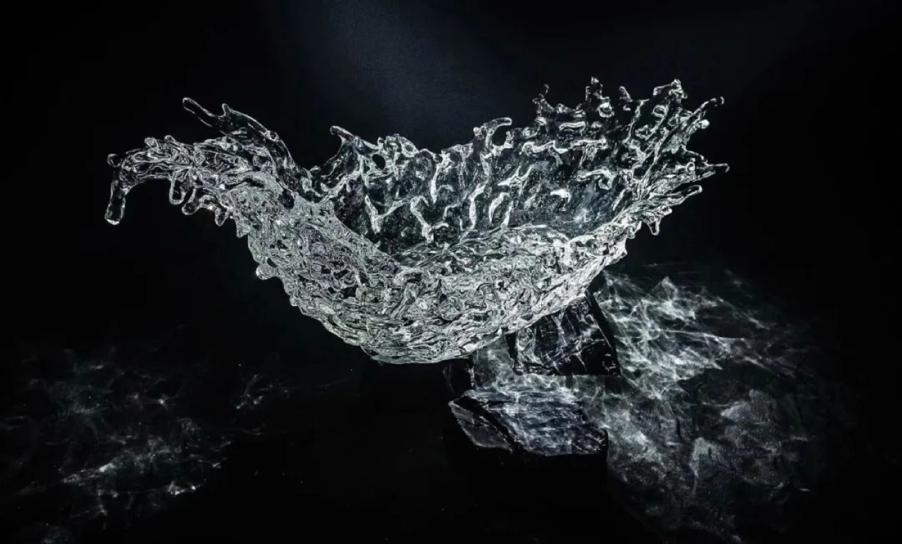 這種特殊的透明材料,其實是一個需要進窯燒製的合成材料,其透明度與水晶相似,質感厚重。而這一切,都是為了呈現那種“break”的感覺——一種平靜之中的衝撞與打破。