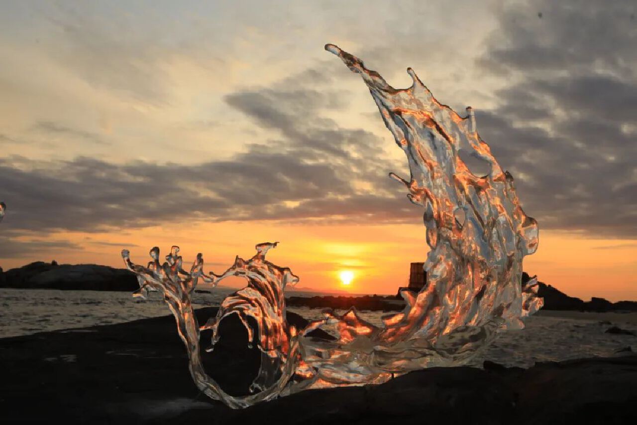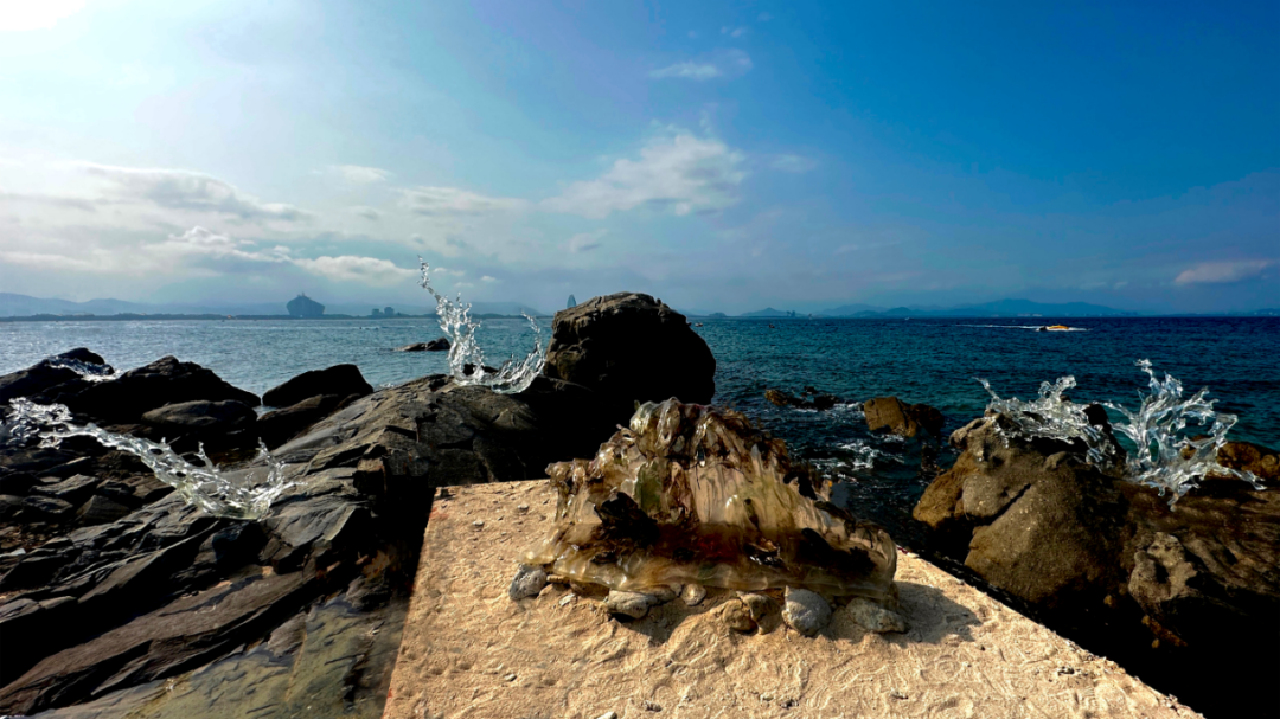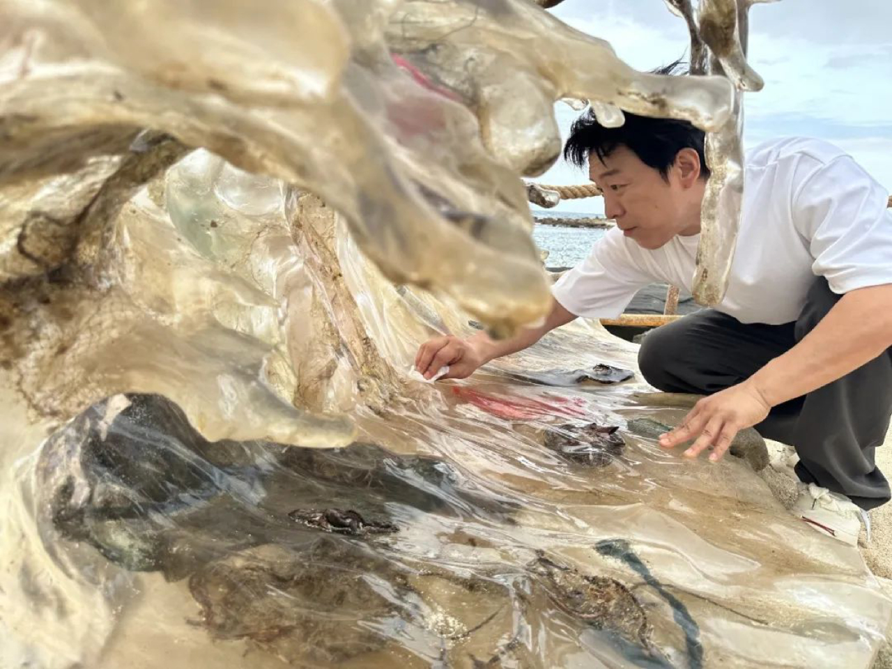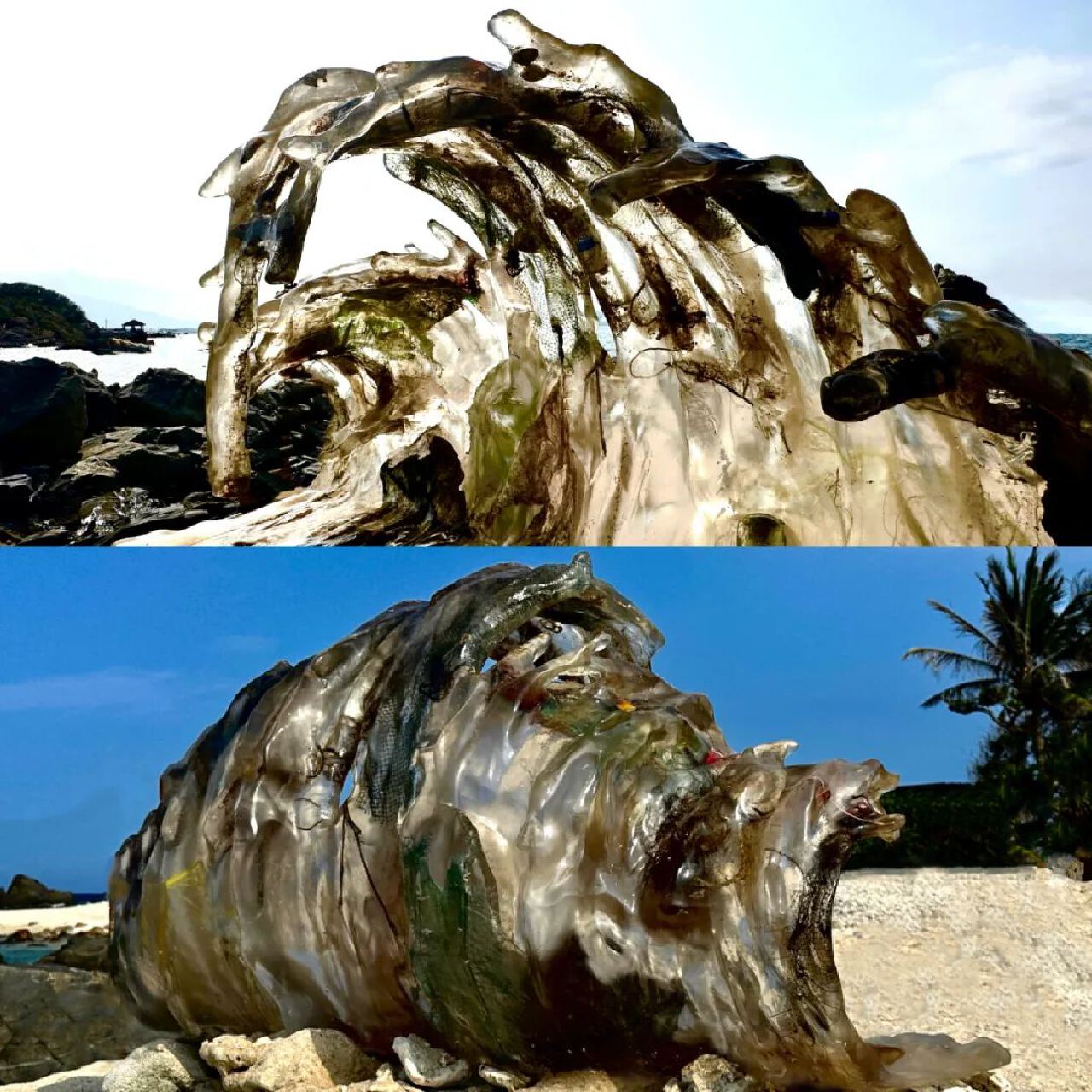 ▲ 跨界藝術家:黃渤×材料藝術家:吳代傑,《濁浪》尺寸可變 透明材料 真實海洋垃圾 2023,三亞蜈支洲島展覽現場