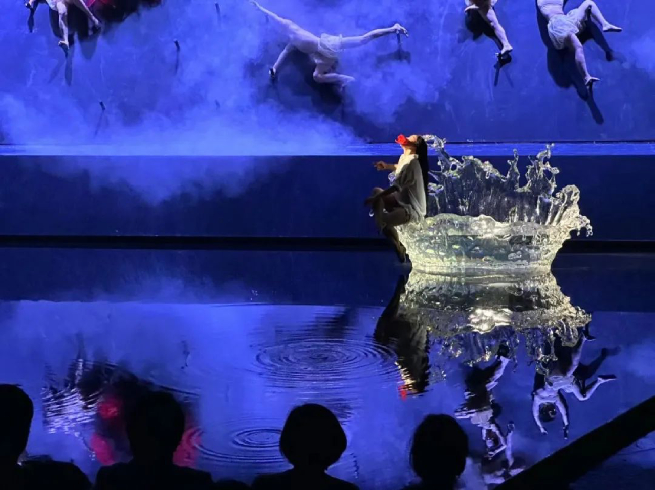 而無論舞台上的身影如何舞動,舞台中心由跨界藝術家黃渤創作的、透明材料製成的巨大雕塑《激浪》,卻始終立在那裏,不動聲色卻又讓人無法忽視。