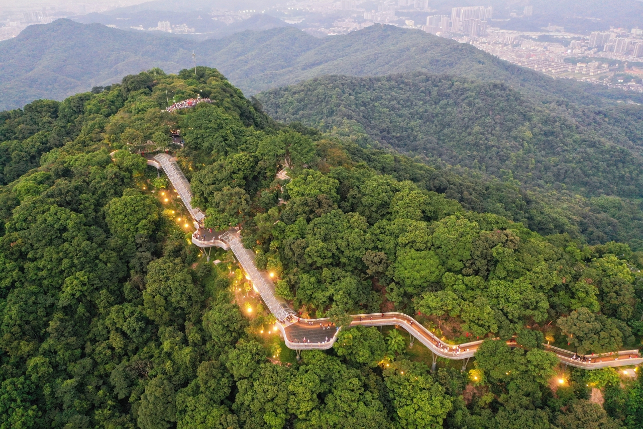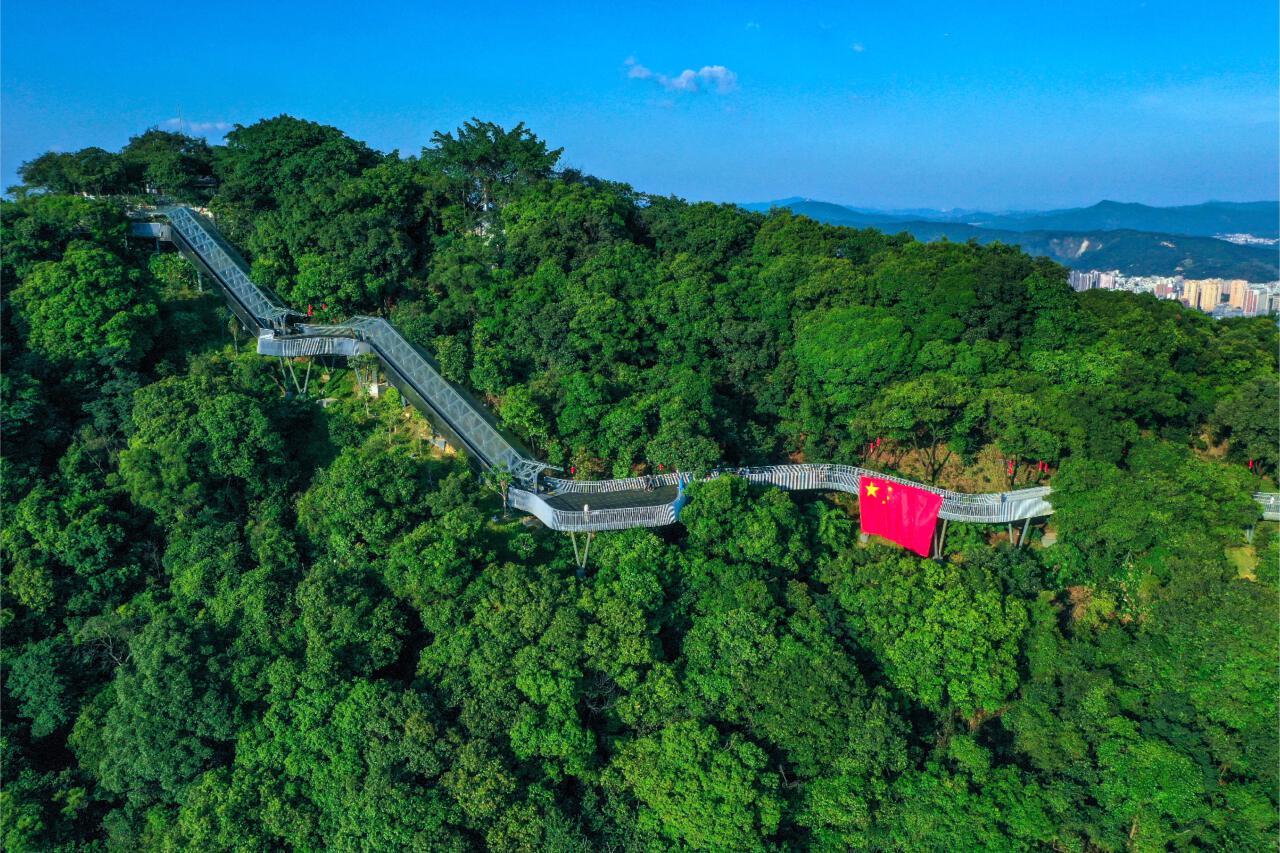 這條登山扶梯由華南理工建築設計研究院的何鏡堂院士團隊設計,採用“棧道+扶梯”的組合形式,讓其完美融入摩星嶺的自然景觀中。在拔高白雲山“觀景線”的同時,也實現了遊客登頂“最後一公里”的無障礙通行。