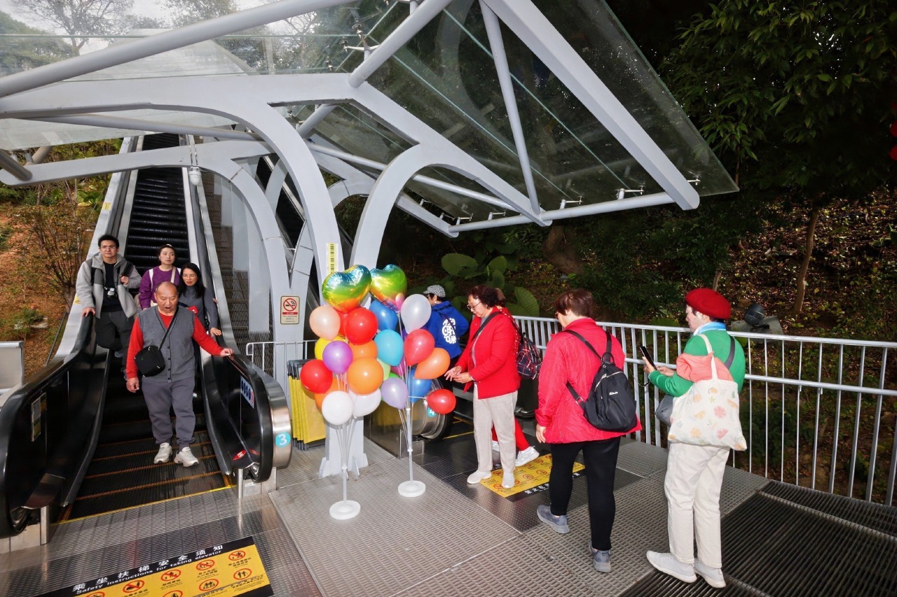△ 來自五湖四海的遊客乘坐扶梯,便利地享受南粵雲山的旖旎風景 圖/Color China