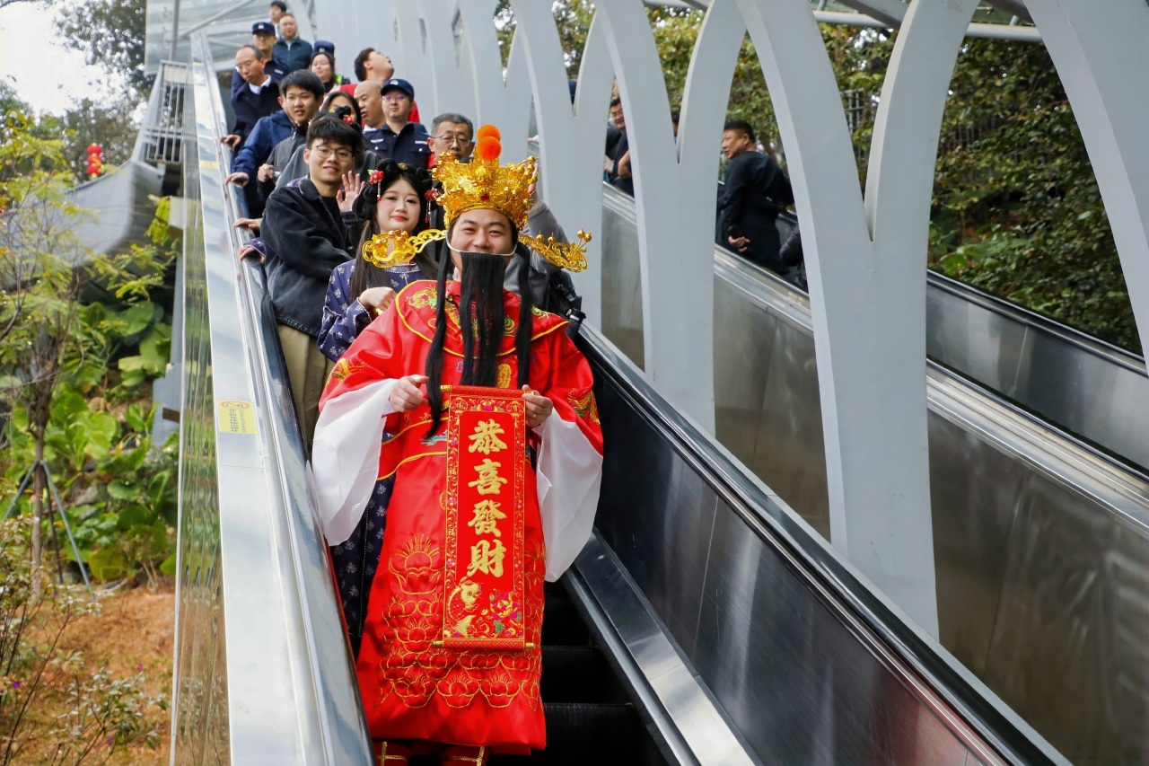 年初八,開工第一天,摩星嶺便迎來了絡繹不絕的遊客踏春賞景。今天,是摩星嶺登山扶梯的運營一周年慶典。自開通運營以來,已有約176萬遊客進園,約120萬遊客通過登山扶梯登上摩星嶺頂,賞壯美風光。