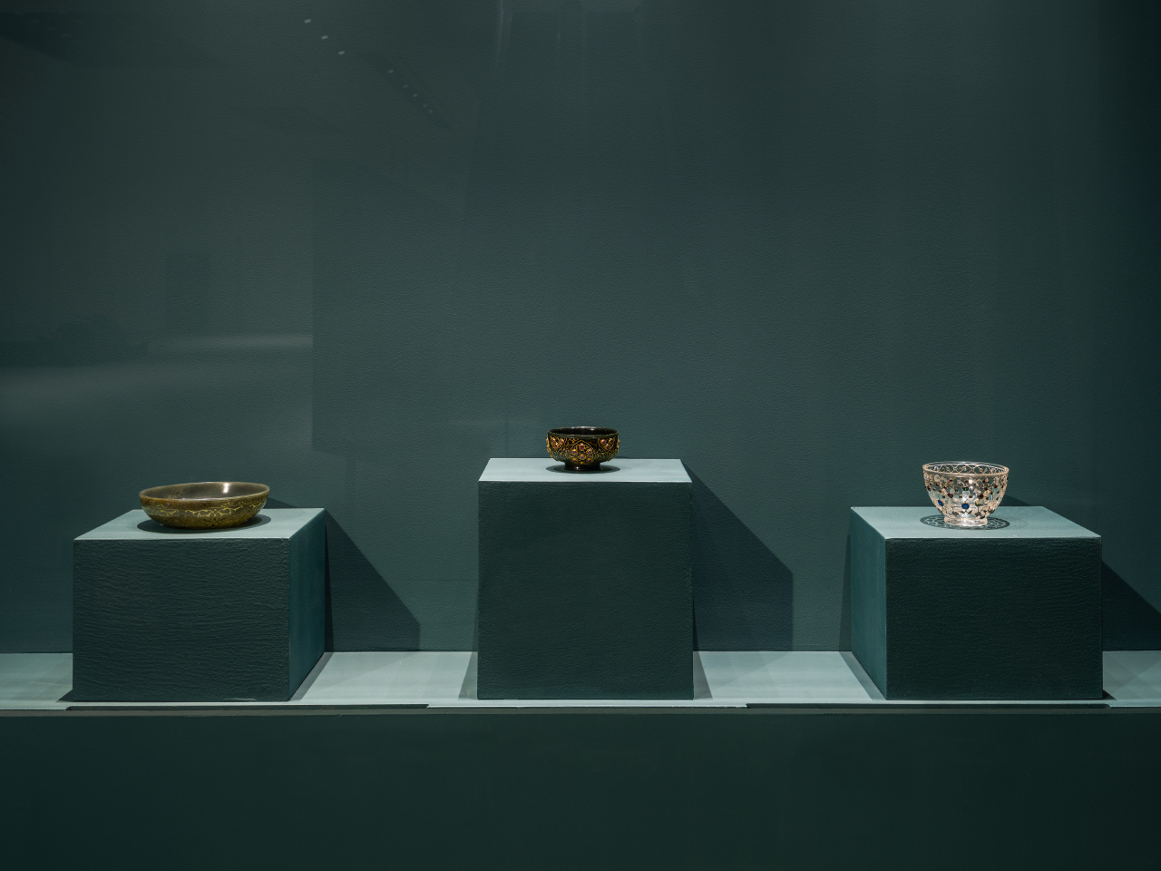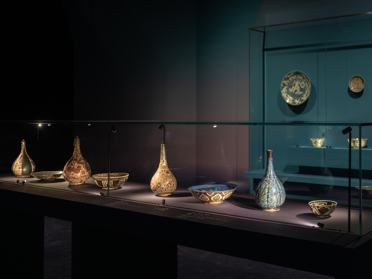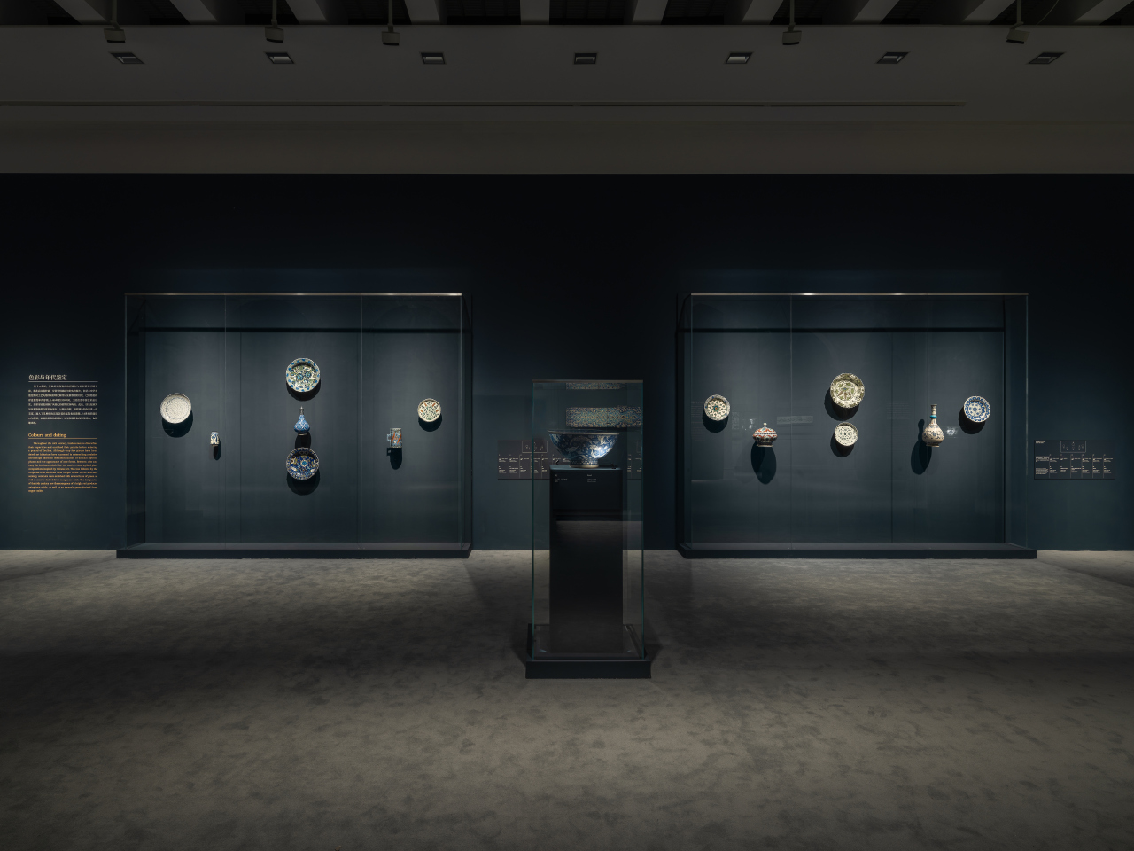 第三板塊則設於四樓展廳,重點呈現奧斯曼帝國的藝術。奧斯曼帝國雄踞歐、亞、非三洲交界,作為連接東西方的文化中樞,其藝術成就令人嘆為觀止。15世紀起,帝國定都伊斯坦布爾,從此這裡成為充滿活力的文化之都。該板塊突顯了阿拉伯書法的魅力:從莊嚴的官方文書到精巧的書法冊與華美的書寫用具,皆印證了書法這一藝術表現形式的重要性。展覽還將觀眾帶入伊茲尼克陶瓷的絢爛世界:坦卡德杯、奇獸紋盤等陶瓷珍品折射出來自包括青瓷在內的中國瓷器的影響,更詮釋了奧斯曼陶工對於圖案的不斷探索。眾多不同材質的建築裝飾構件,映射出奧斯曼帝國將圖案從器物延伸至建築的美學成就。